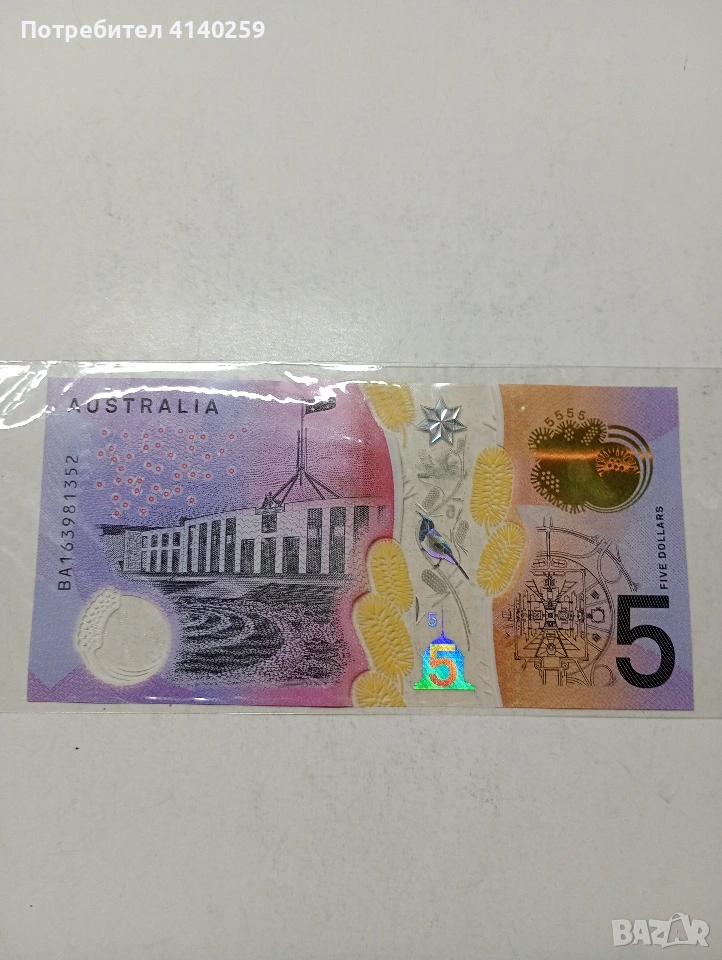 АВСТРАЛИЯ БАНКНОТА 5 ДОЛАРА 2016 Г ПОЛИМЕР СЪСТОЯНИЕ ВИДИМО ПОЛУЧАВАТЕ СНИМАНАТА БАНКНОТА РАЗГЛЕДАЙТЕ ДРУГИТЕ МИ ОБЯВИ ДА КОМБИНИРАТЕ ДОСТАВКА ЕКОНТ ЗА ВАРНА ЛИЧНО