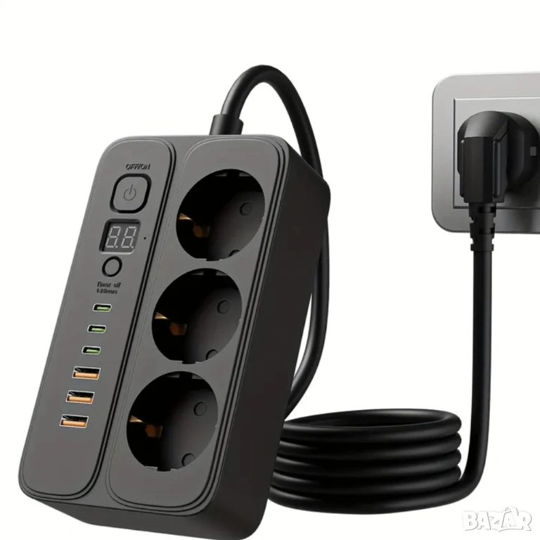 Продавам нов качествен разклонител. Има входове за USB-C Таймер за изключване, държач за GSM, може да се закрепва и на стени и др.