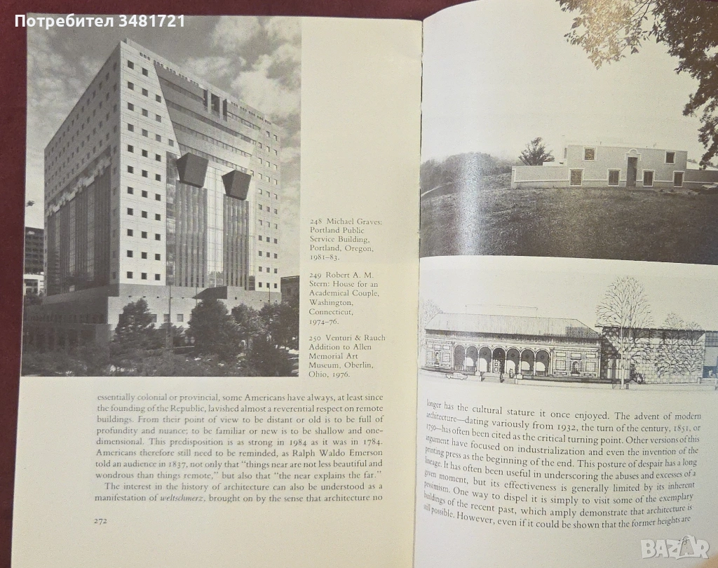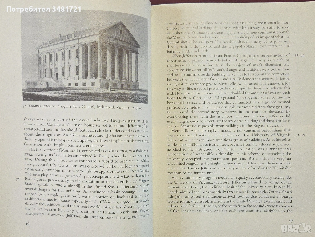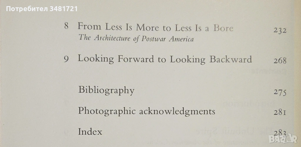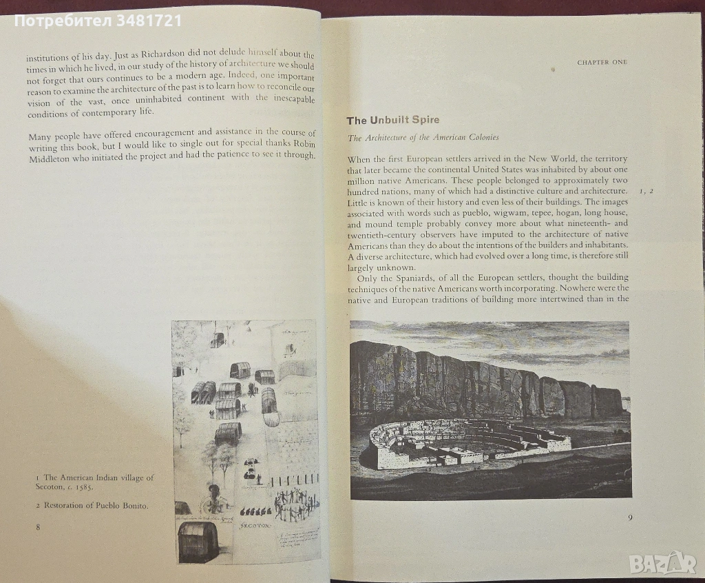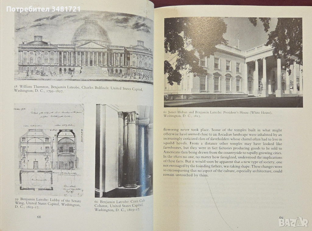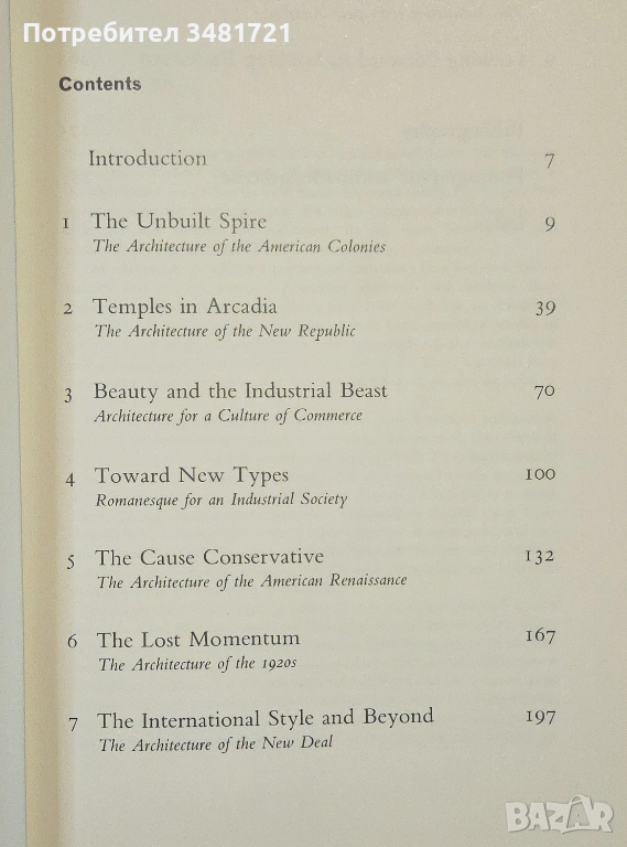 В Америка архитектите често са били изправени пред интересен въпрос - дали да продължат да използват стила на Стария свят или да се съсредоточат върху изискванията на новия? Книгата проследява в текст и 250 илюстрации историята на архитектурата в САЩ, разглеждайки обществени сгради, офиси и домове, като се дава анализ на влиятелни движения и архитекти от нейното начало през 17ти век до наши дни.