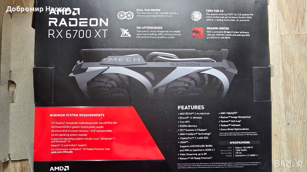Видео Карта Radeon RX 6700 XT 12GB Mech 2x, снимка 1 - Видеокарти - 54244506 Видео Карта Radeon RX 6700 XT 12GB Mech 2x, снимка 2 - Видеокарти - 54244506 Видео Карта Radeon RX 6700 XT 12GB Mech 2x, снимка 3 - Видеокарти - 54244506 Видео Карта Radeon RX 6700 XT 12GB Mech 2x, снимка 4 - Видеокарти - 54244506 Видео Карта Radeon RX 6700 XT 12GB Mech 2x, снимка 5 - Видеокарти - 54244506 Видео Карта Radeon RX 6700 XT 12GB Mech 2x, снимка 6 - Видеокарти - 54244506 Видео Карта Radeon RX 6700 XT 12GB Mech 2x, снимка 7 - Видеокарти - 54244506 1/7