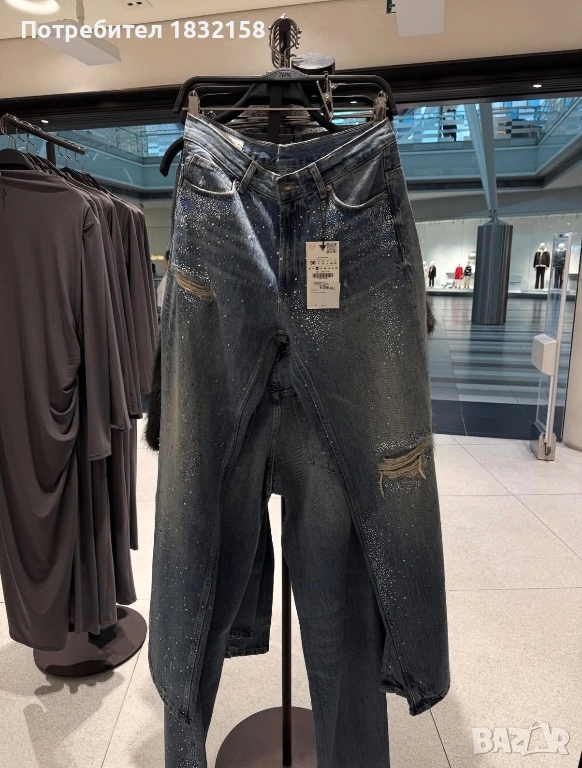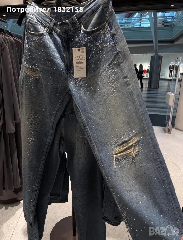 Дънки Zara,с декоративни накъсвания и камъни,дънките са с прав крачол и средна талия,нови с етикет,лимитирана серия.