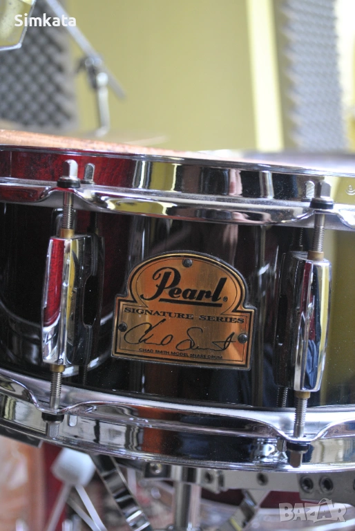 В центъра на конфигурацията стои малкият барабан Chad Smith Signature – модел, който отдавна е спрян от производство в оригиналния си вид и се е превърнал в абсолютен еталон за рок и фънк звучене. Изработен от черна стомана с размери 14" x 5", този барабан е известен със своя прорязващ звук и способността си да „диша“ дори при най-екстремни динамики. Неслучайно той е част от арсенала на безброй професионалисти по целия свят, доказвайки, че стоманеният корпус може да бъде едновременно агресивен и музикален.