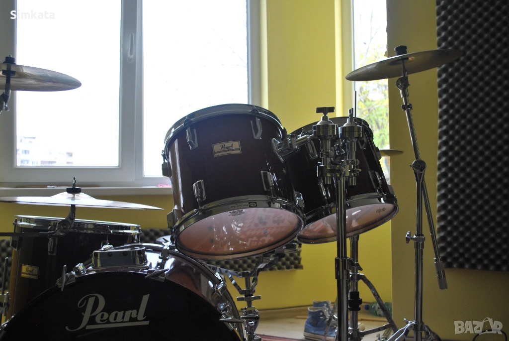 Предлаганият комплект представлява връхна точка в японското производство на Pearl от ерата, в която инструментите се изработваха, за да доминират сцената десетилетия наред. Pearl DLX, познат още като 7500 Series, е истинска инженерна рядкост заради своите хибридни корпуси. Комбинацията от седем пласта бреза, махагон и бук създава звуков профил, който е практически непостижим за модерните еднородни сетове. Брезата осигурява необходимата атака и яснота, махагонът добавя дълбоки и топли ниски честоти, а слоят от бук придава на корпуса изключителна структурна здравина и проекция. Това е сет, който се „чувства“ в гърдите при всеки удар, притежавайки онова специфично звуково тегло, характерно за златните години на японското барабаностроене.