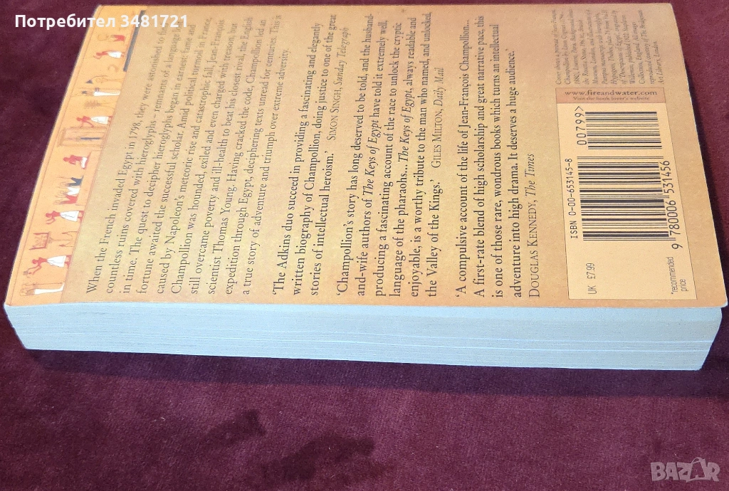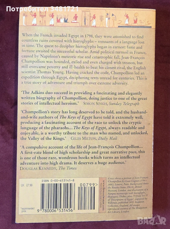 Това е една хроника на двадесетгодишния опит на френския лингвист Жан-Франсоа Шамполион да разшифрова египетските йероглифи въпреки бедността, лошото здраве, конкуренцията от английския лекар Томас Йънг и политическите врагове.