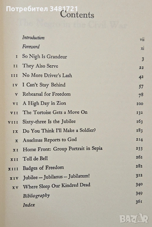 Над 3 милиона роби на юг са въвлечени като небойни единици в строенето на фортове и укрепления, в работа във фабрики и мини. На север, чернокожите американци се борят храбро на бойното поле, за да извоюват своя с кръвта си един идеал - свободата на независими хора. Това е тяхната история, майсторски разказана от Бенджамин Куарлс.