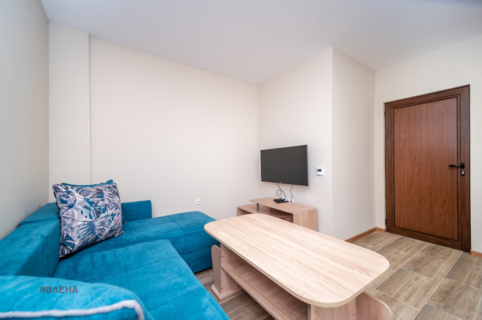 Апартамент състои се от: входно антре, хол с кухненски бокс, спалня, баня с тоалетна, тераса. Разполага с всички необходими мебели и електроуреди.