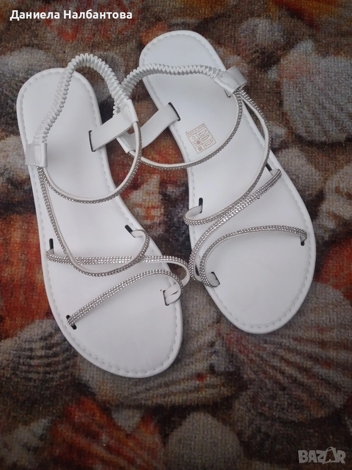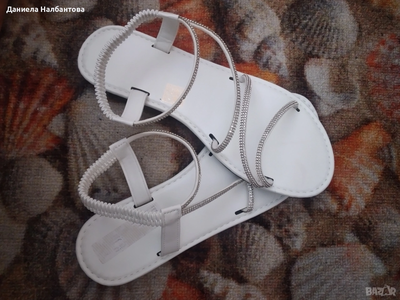 Дамски сандали, бяли, 41 номер. Сандалите са нови, само бяха пробвани,но се оказаха големи.