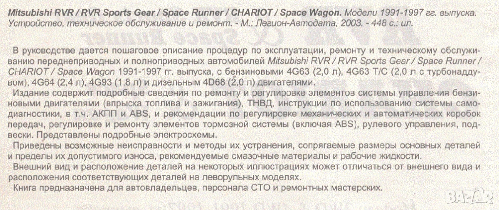 Wagon. Модели 1991-1997 г. с бензинови 4G63 (2,0 л), 4G63 T/C (2,0 л с турбонаддув), 4G64 (2.4