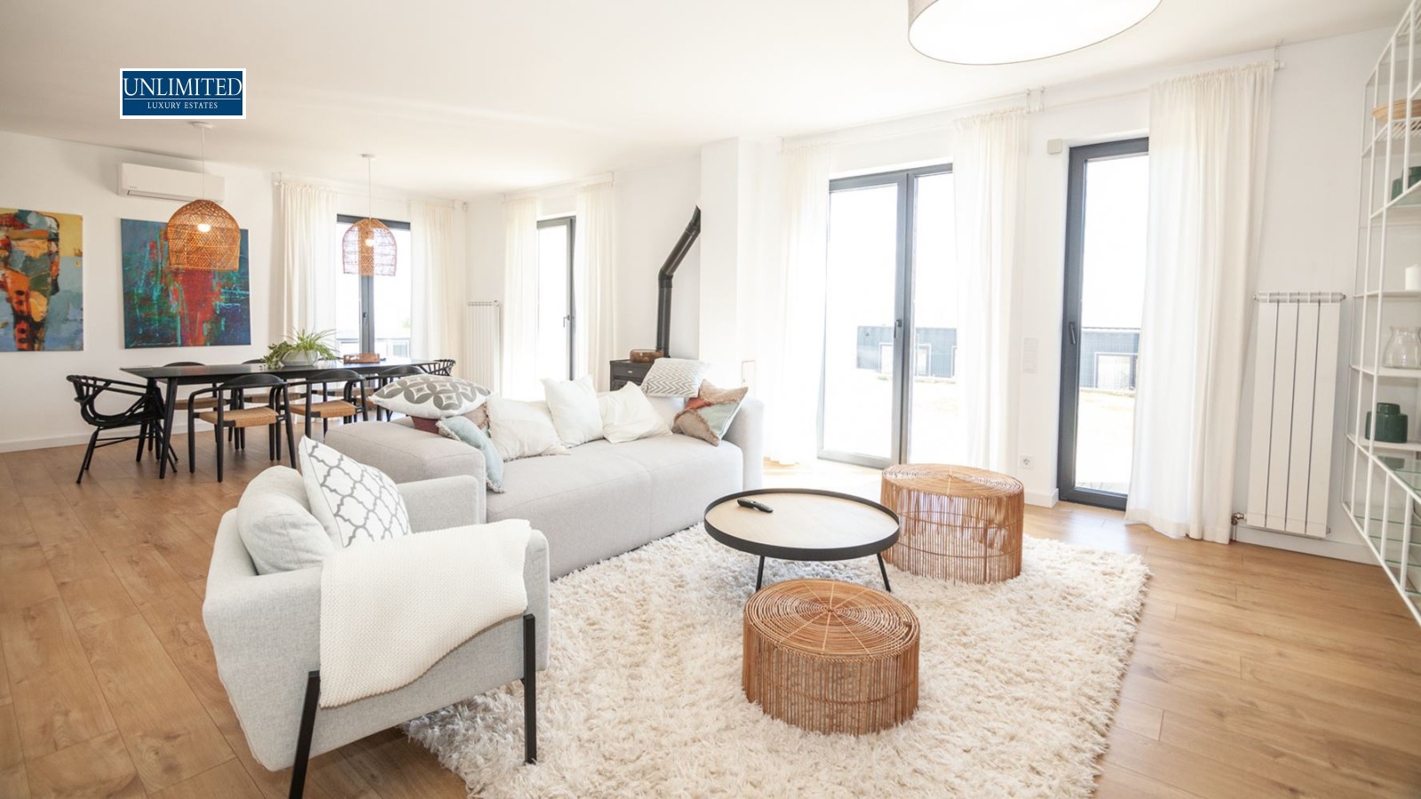 The property stands out with its modern architecture, elegant interior design, and highly functional layout, offering a perfect balance between comfort and style. Large floor-to-ceiling windows provide abundant natural light and create a bright and inviting atmosphere throughout.