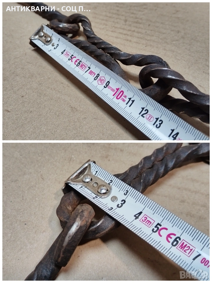 - Веригата е в перфектно състояние за годините си, напълно здрава и изключително запазена, както и със изключителна изработка усукана, прекрасна за употреба на битов кът и много други, всичко е снимано подробно, размерите са на снимките!