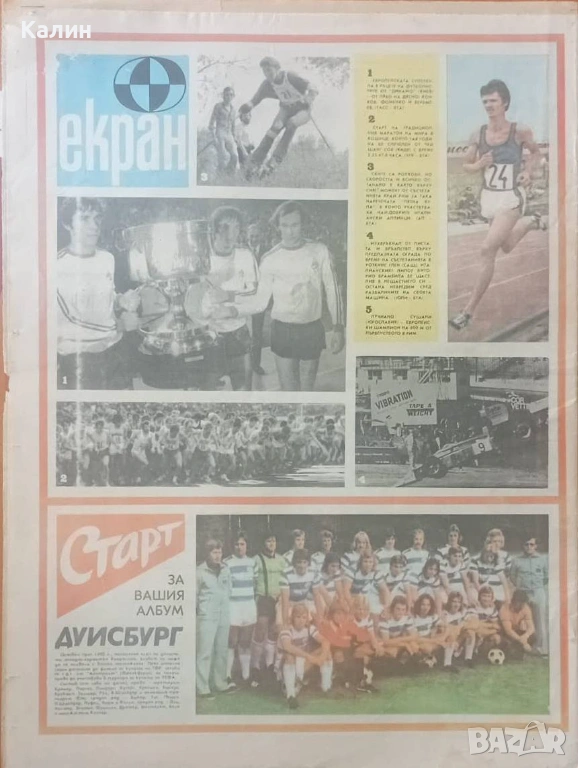 Продавам брой 229 от 21 октомври 1975 година на вестник „Старт” на цена 9 евро, със снимка на първата страница на Нели Санкева-водач на плуването сред жените през 1975 година и снимка на последната страница на футболният отбор на Дуисбург-участник в турнира за купата на УЕФА през сезон 1975-1976 година.
