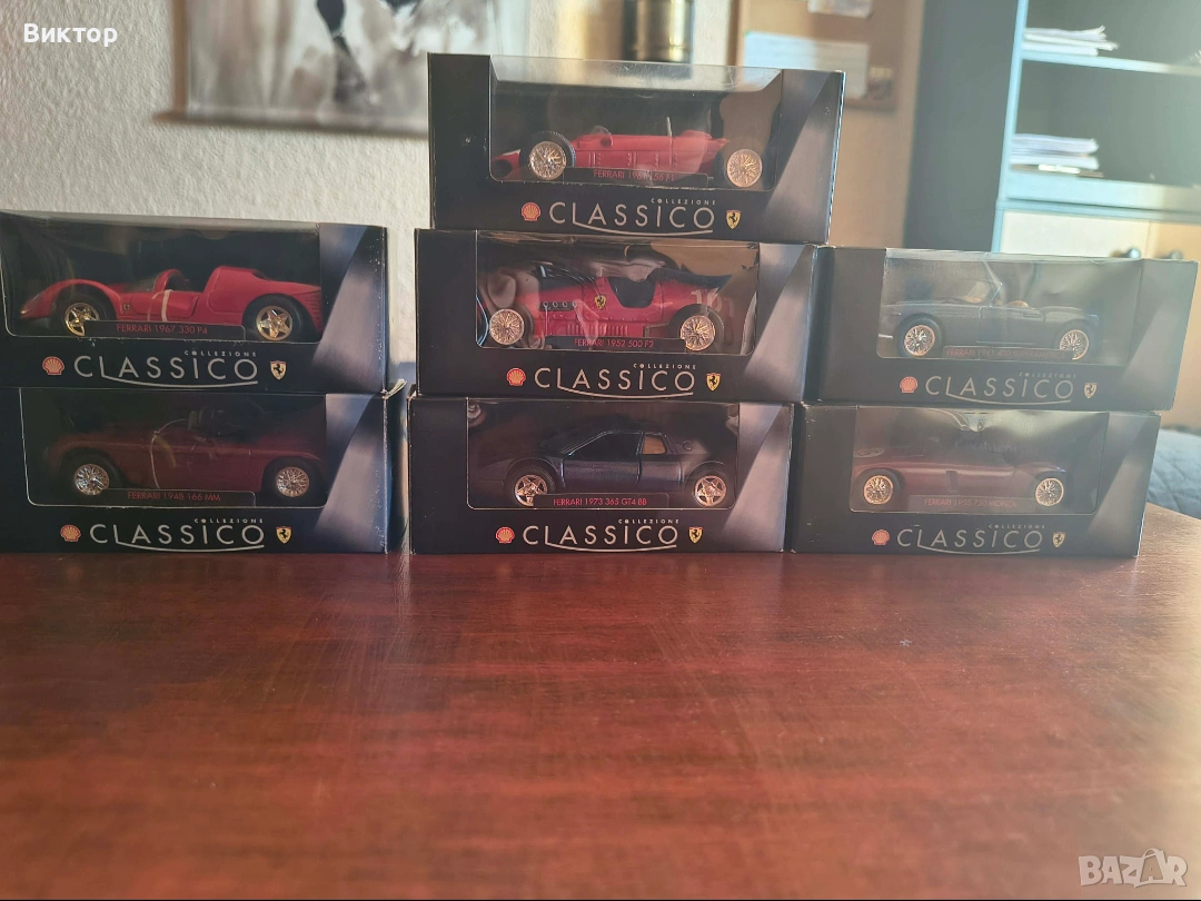 ΠΡΠΎΠ΄Π°Π²Π°ΠΌ ΠΏΠΎΡΡΠΈ ΠΏΡΠ»Π΅Π½ ΠΊΠΎΠΌΠΏΠ»Π΅ΠΊΡ ΠΎΡ ΡΠ΅ΡΠΈΡΡΠ° Shell Ferrari Classico β ΠΎΠ±ΡΠΎ 7 ΠΎΡ 8 ΠΌΠΎΠ΄Π΅Π»Π°. ΠΠΎΠ»ΠΈΡΠΊΠΈΡΠ΅ ΡΠ° Π² ΠΌΠ½ΠΎΠ³ΠΎ Π΄ΠΎΠ±ΡΠΎ ΡΡΡΡΠΎΡΠ½ΠΈΠ΅, Ρ ΠΎΡΠΈΠ³ΠΈΠ½Π°Π»Π½ΠΈΡΠ΅ ΠΊΡΡΠΈΠΈ. π¦ ΠΠΊΠ»ΡΡΠ²Π°: β’ Ferrari 500 F2 (1952)(Π»Π΅ΠΊΠΎ Π½Π°ΡΡΡΠ΅Π½Π° ΠΎΠΏΠ°ΠΊΠΎΠ²ΠΊΠ°) β’ Ferrari 156 F1 (1961) β’ Ferrari 400 Superamerica (1961) β’ Ferrari 166 MM (1948) β’ Ferrari 330 P4 (1967) β’ Ferrari 365 GT4 BB (1973) β’ Ferrari 750 Monza (1955) β ΠΠΈΠΏΡΠ²Π° 1 ΠΌΠΎΠ΄Π΅Π» ΠΎΡ ΡΠ΅ΡΠΈΡΡΠ° π° Π¦Π΅Π½Π°: 85 β¬ (ΠΏΠΎΠ΄Π»Π΅ΠΆΠΈ Π½Π° ΠΊΠΎΠΌΠ΅Π½ΡΠ°Ρ) ΠΠΎΠ΄Ρ