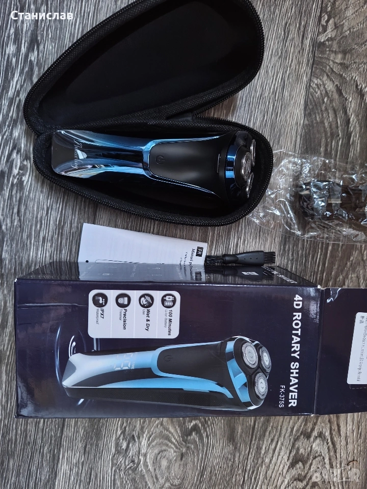 Този продукт е електрическа самобръсначка YIRISO модел FK-375S. Тип: 4D ротационна самобръсначка. Употреба: Подходяща за мокро и сухо бръснене. Батерия: Литиево-йонна, осигуряваща 100 минути работа. Характеристики: Водоустойчивост IPX7 и вграден прецизен тример.