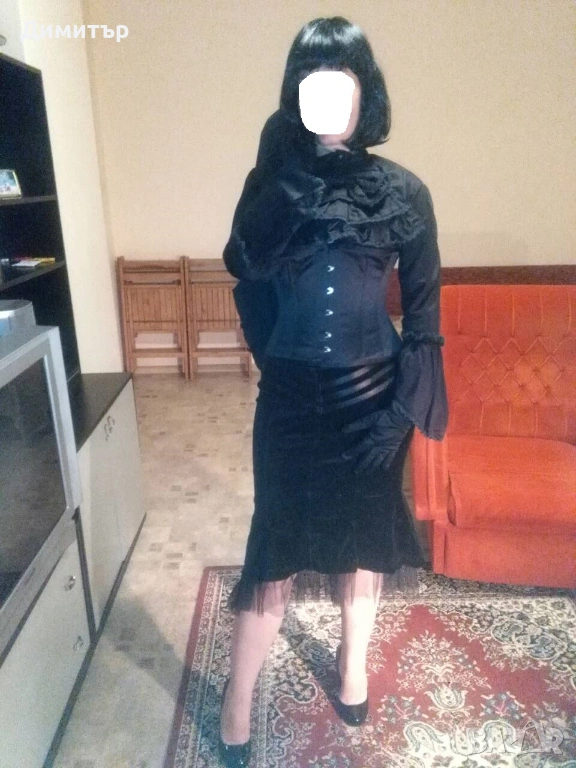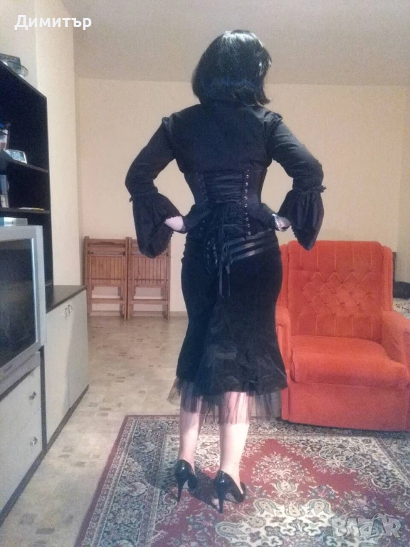 Отлично състояние, размер 38 по етикет. Дължина отпред без дантела 54 см, с дантелата 65 см, на гърба 63/74 см. Талия 38-40 см, ханш 45 см, широчина в най-долната част 63 см, отстрани на талията има цип дълъг 14 см.