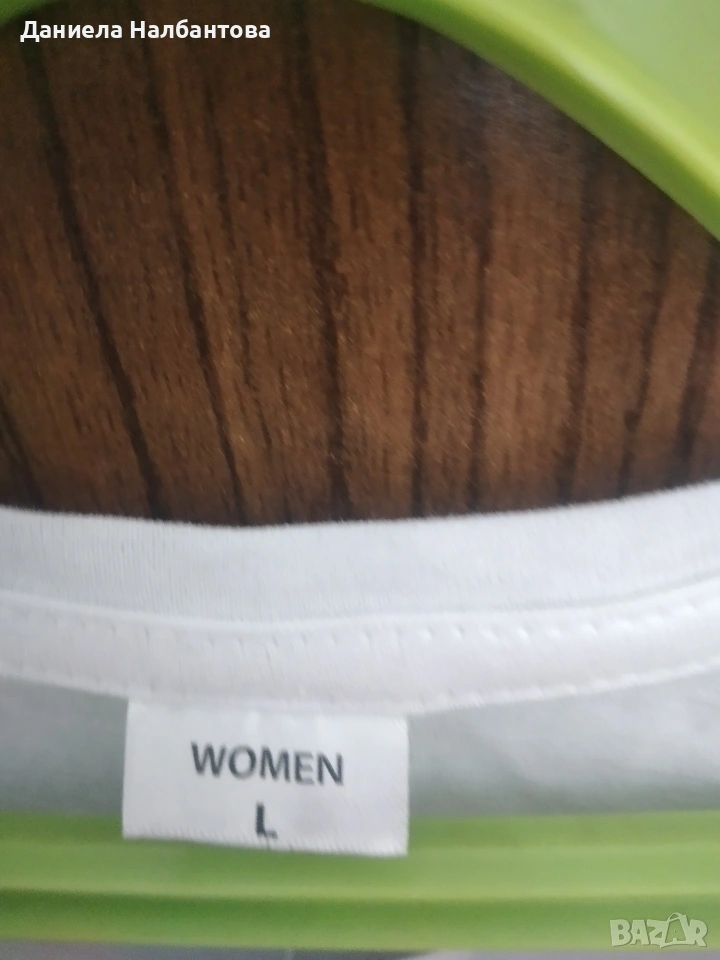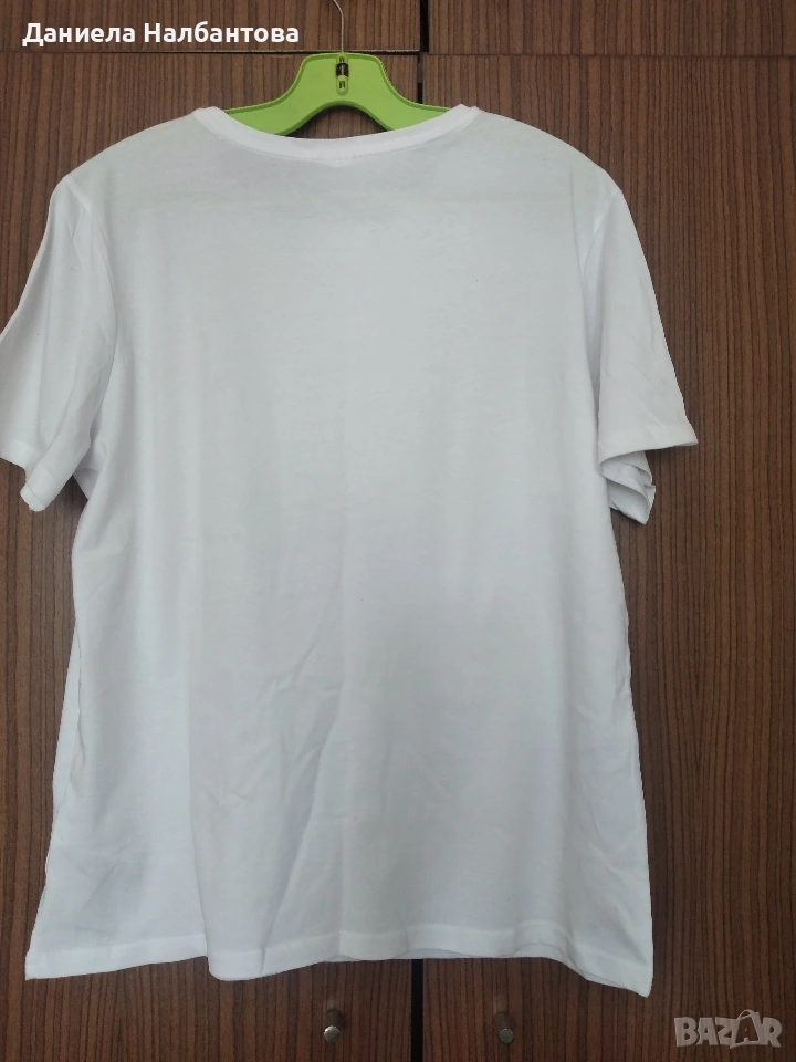 Бяла тениска размер L,нова. Материята е 100%памук.