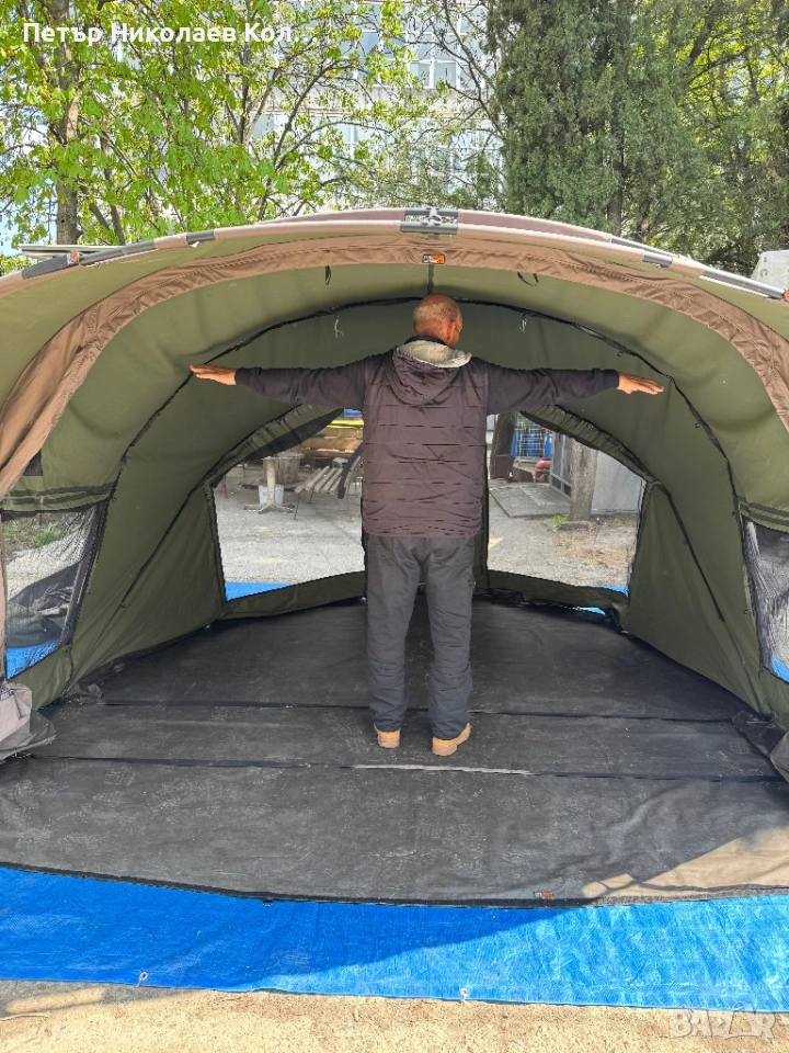 Изработена от Ven-Tec Rip Stop с 20000мм воден стълб, а размерите й без проблем побират легла и багаж на двама риболовци.