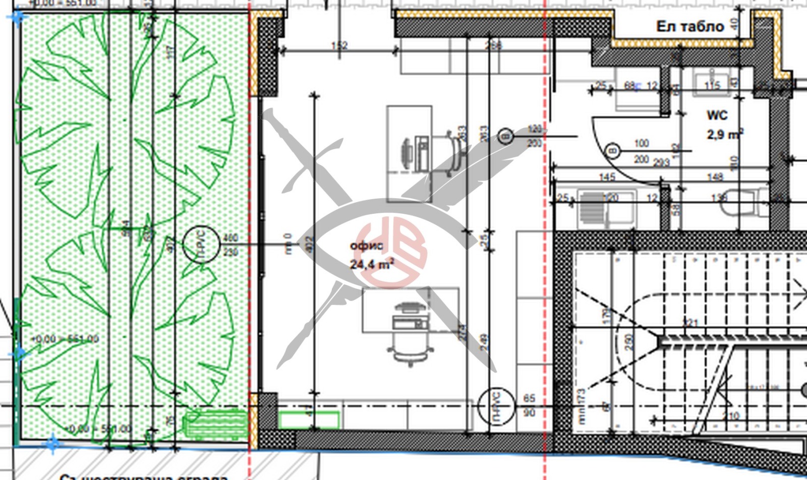 СТРОИТЕЛСТВО: Офисът е ситуиран на партерен етаж в сграда ново строителство.