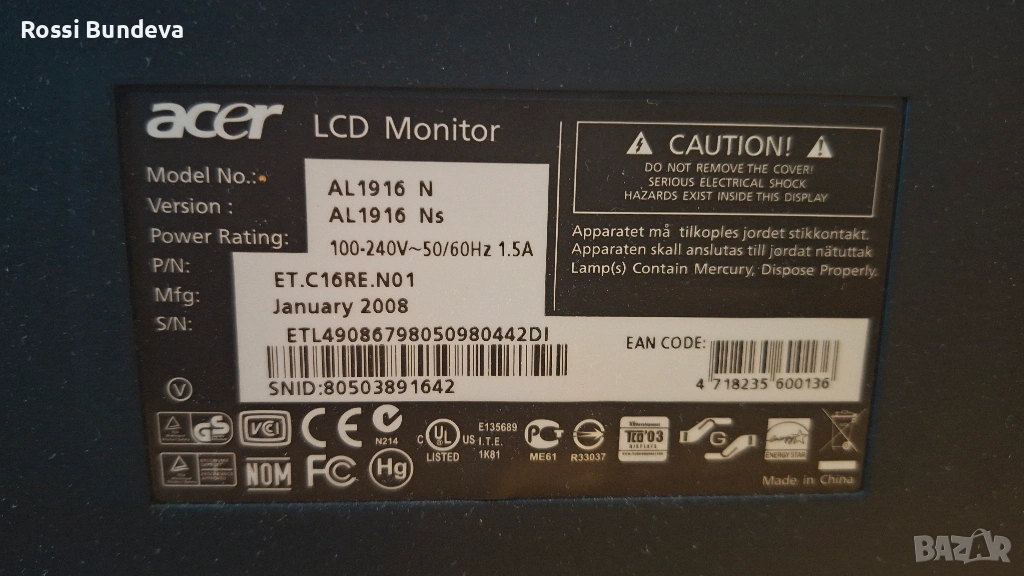 Монитор Aser 19", снимка 1 - Монитори - 54247213 Монитор Aser 19", снимка 2 - Монитори - 54247213 Монитор Aser 19", снимка 3 - Монитори - 54247213 Монитор Aser 19", снимка 4 - Монитори - 54247213 Монитор Aser 19", снимка 5 - Монитори - 54247213 1/5