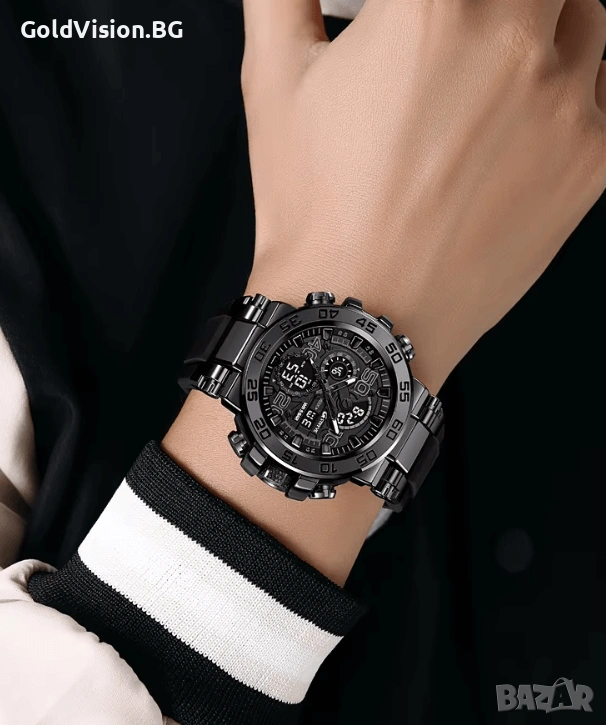 Богати функции: хронограф, ден/дата, аларма, LED подсветка и автоматична дата