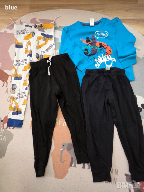 Голям лот дрешки размер 98-104 и само 104, добавям още няколко които са друг размер но са умалени. Дрешките са за слабичко детенце. Лота съдържа екипче, долнища и дънки, блузки с дълъг ръкав, оижама на дисни, риза и тениски. При повече въпроси ми пишете. Цена на лота 8 евро.