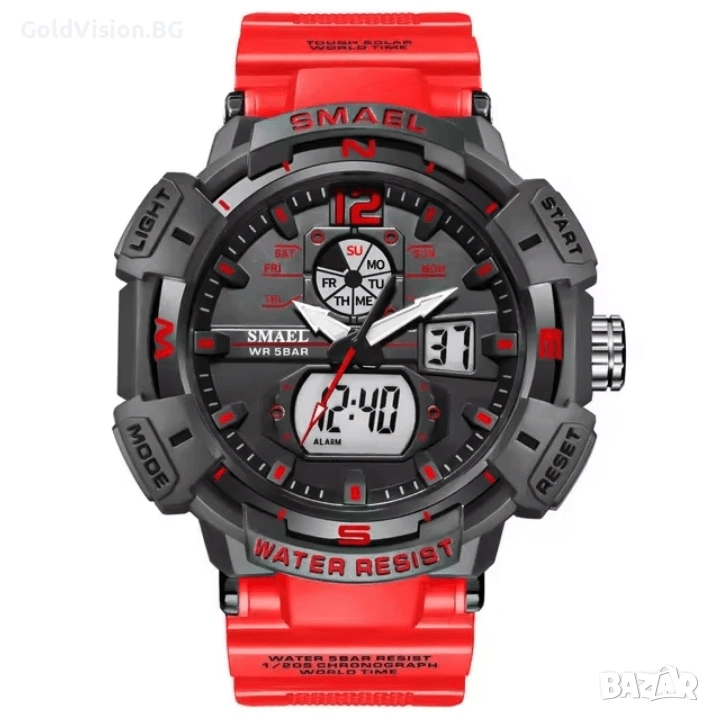 SMAEL Red е часовник, който обединява здравина и функционалност. Със своя двоен дисплей, хронометър, аларма и календар, той е създаден за динамичен начин на живот. Подсветката и луминисцентните стрелки осигуряват отлична видимост, а водоустойчивостта до 50 м. гарантира надеждност при спорт и водни активности. Това е перфектният избор за мъже, които искат стил и практичност в едно.