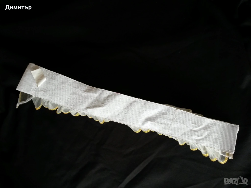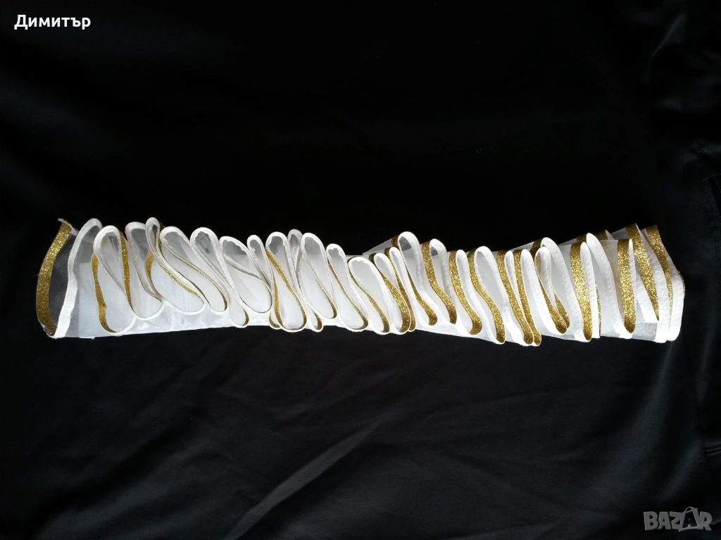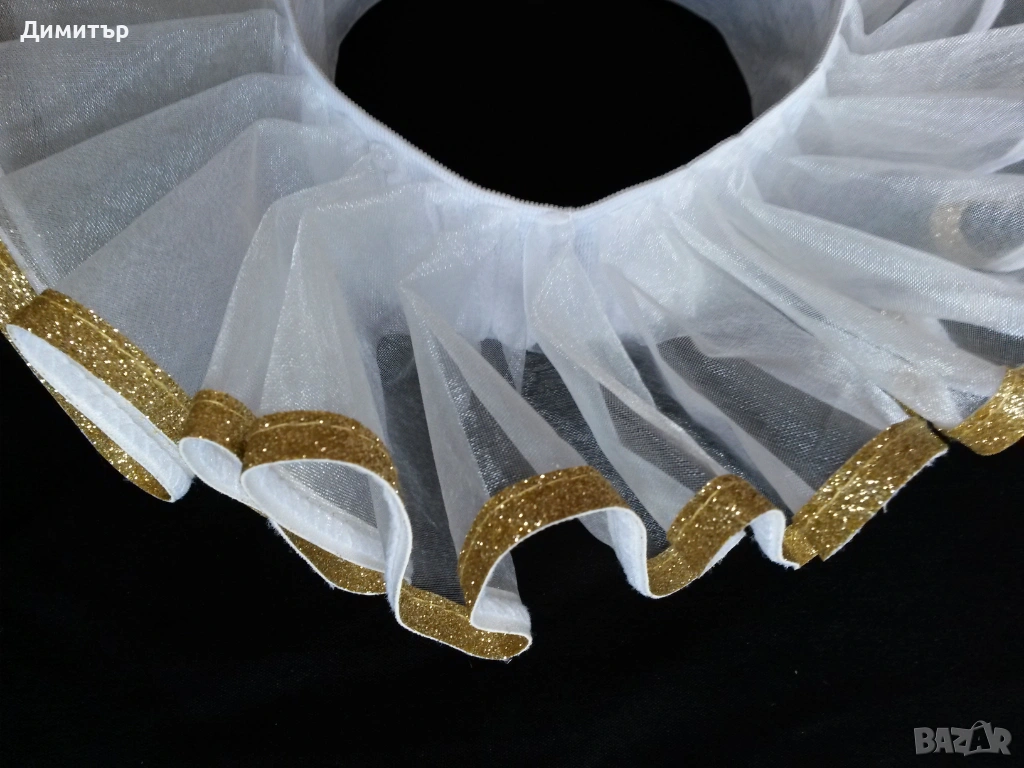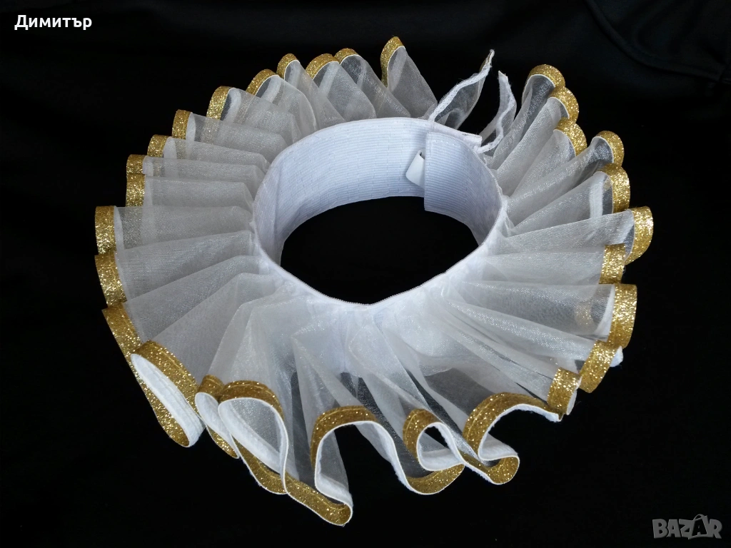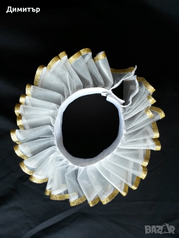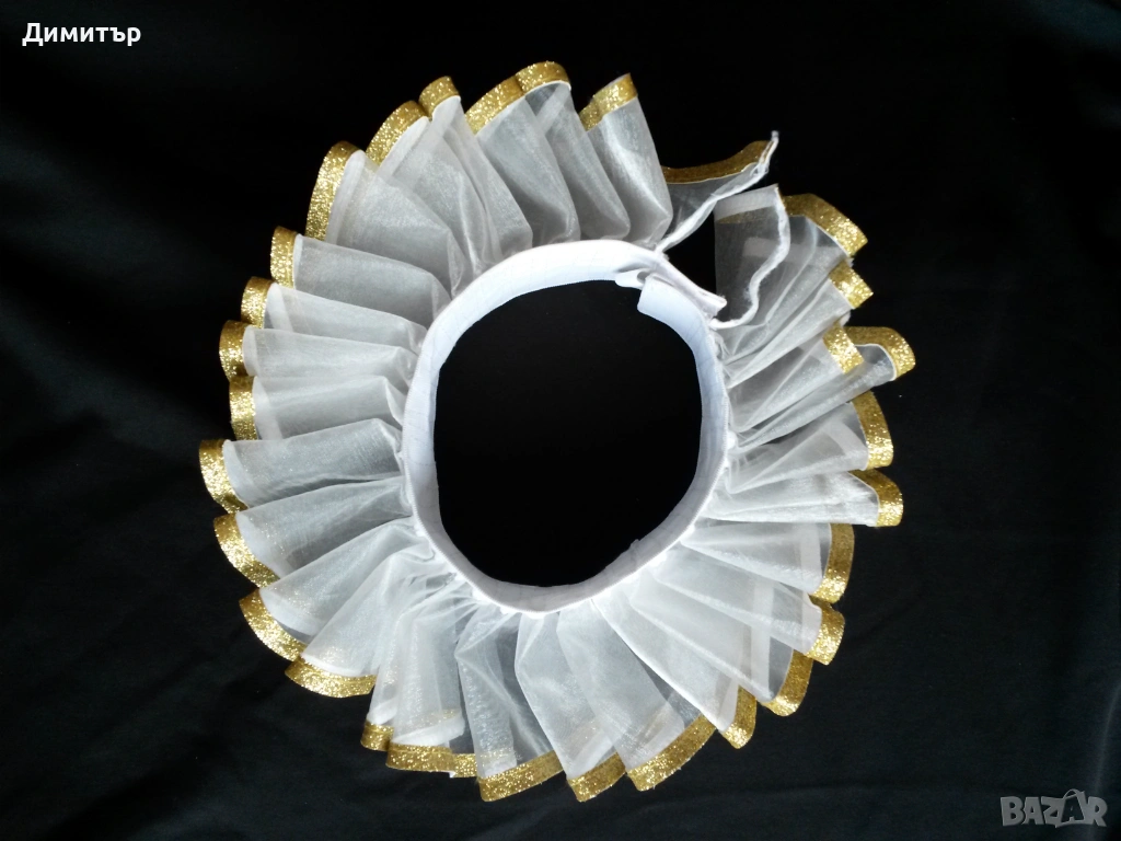 Чисто нова, материя полиестер. Вътрешен диаметър около врата 11 см, външен диаметър 24 см. Височина 5 см, дължина дантела 6 см.