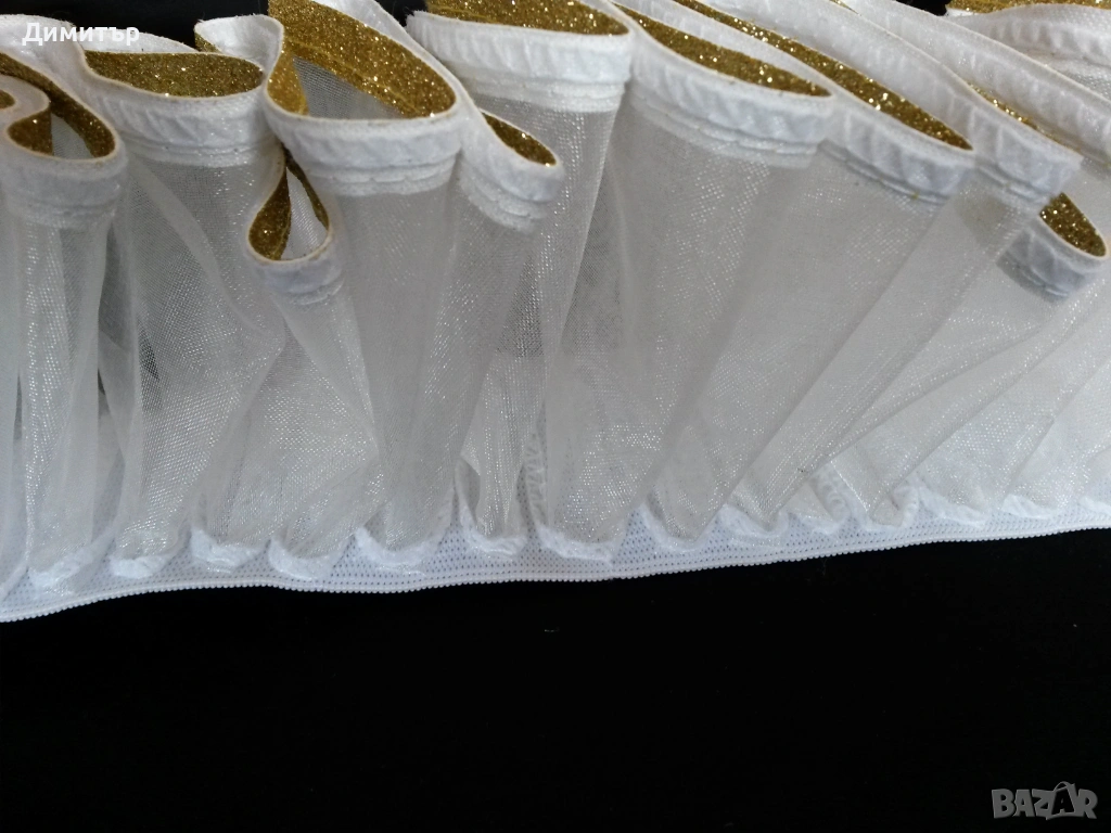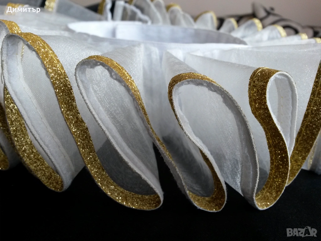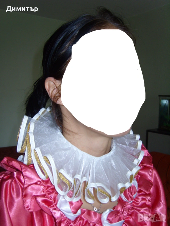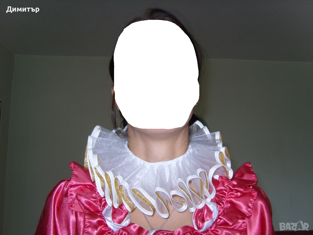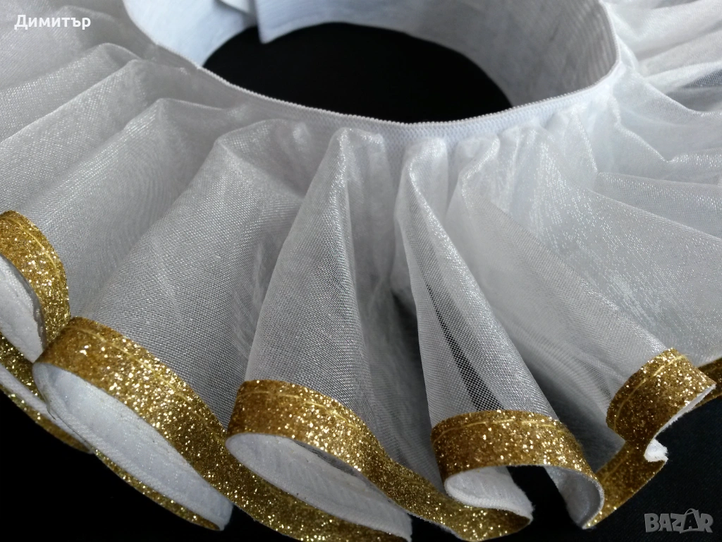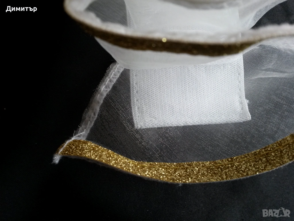 Чисто нова, материя полиестер. Вътрешен диаметър около врата 11 см, външен диаметър 24 см. Височина 5 см, дължина дантела 6 см.