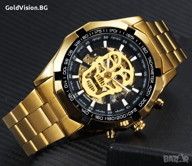 Winner Skull GOLD е стилен мъжки механичен часовник с автоматичен механизъм, който не изисква батерия — спокойно се навива с движението на китката. Моделът се отличава с метална верижка и изчистена, класическа визия, подходяща както за ежедневие, така и за по-официални поводи. Този часовник е добър избор за мъже, които търсят едновременно надеждност, стил и традиция.