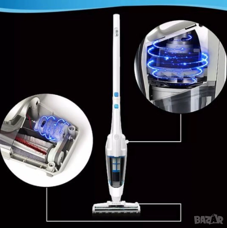 · Комбинацията 2 в 1 ви позволява да използвате прахосмукачката без основната четка, лесно се използва като ръчна прахосмукачка. С помощта на такова компактно устройство можете лесно да почиствате ъгли и цокли, както и тапицерия на мебели;