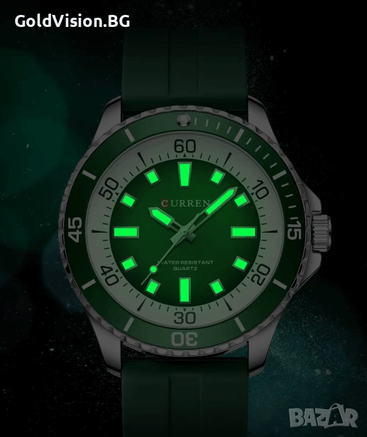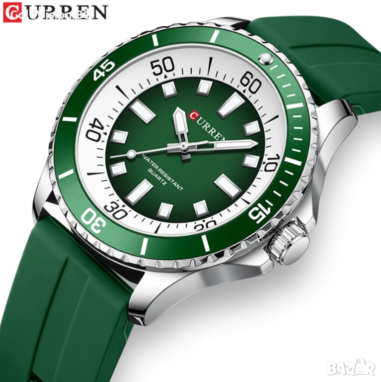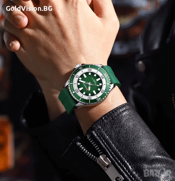 Модел CURREN 8448 – GREEN е отлично съчетание от спортен дух и елегантен дизайн. Подходящ за активни мъже, които имат нужда от надежден часовник за всяка ситуация – от ежедневието до спорт и бизнес срещи. Силиконовата каишка и луминесцентните стрелки осигуряват комфорт и функционалност, а стилният външен вид го прави идеален избор за подарък.