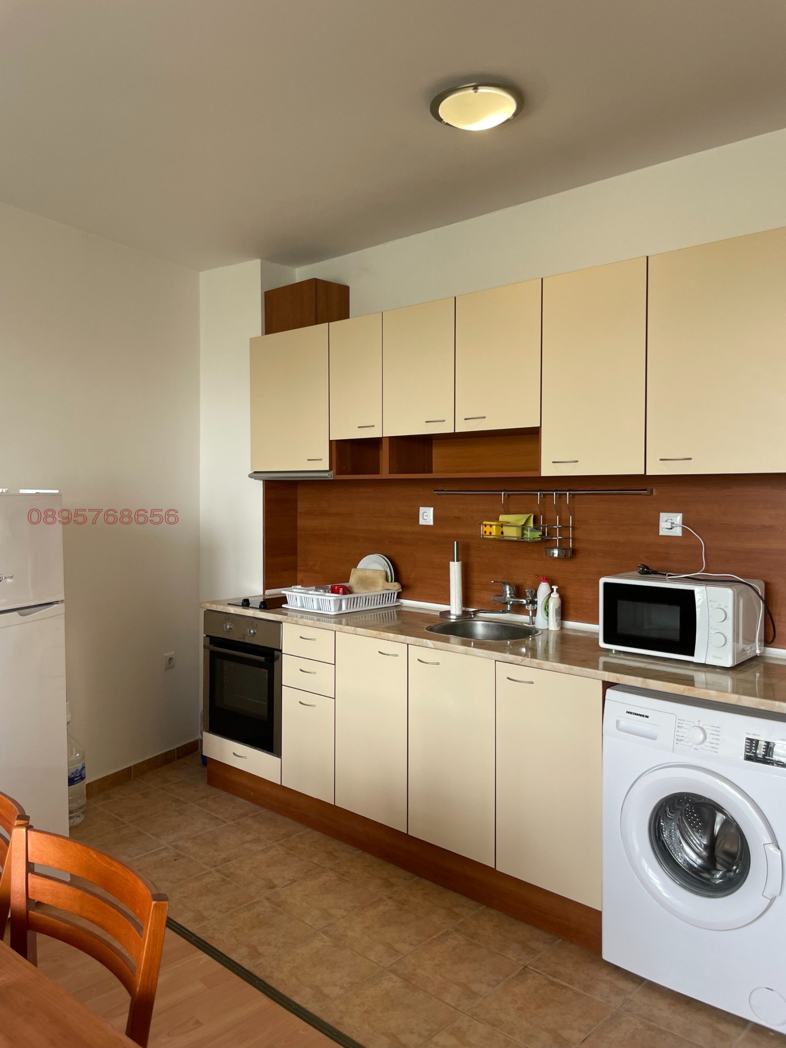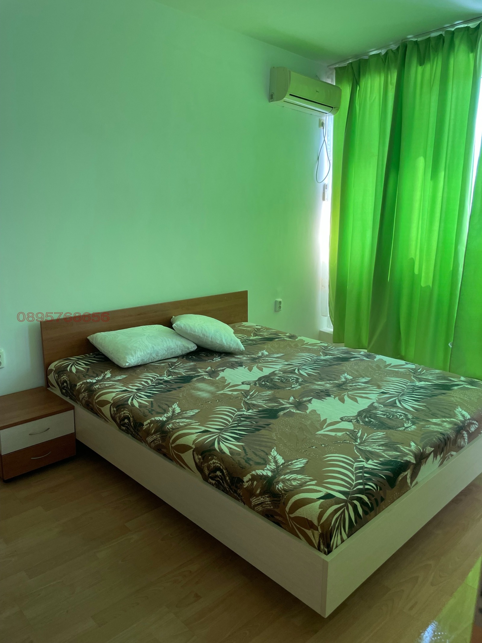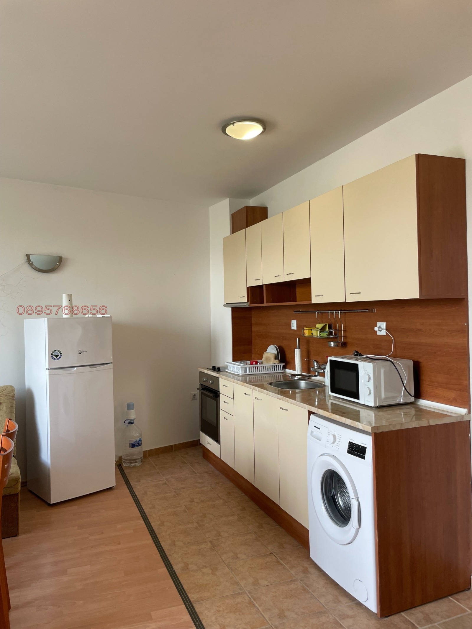 Пералня, хладилник, микровълнова фурна, вградена фурна и стъкло-керамичен плот, апспиратор, телевизор, нов климатик, пълна посуда - чинии, чаши, прибори и всичко необходимо. В имота има интернет включен в цената. Голяма , закрита тераса с гледка към басена. Имота се намира в тих затворен комплекс с контролиран достъп и парко места. Коплакеса е добре подържан и много спокоен. Намира се в близост до Двореца с достъп до автобусни спирки до к.к. Албена, заведения, магазини и всичко необходимо. Дългосрочен договр , целогодишно наемане, депозит в размер на един месечен наем, допускат се домашни любимци.