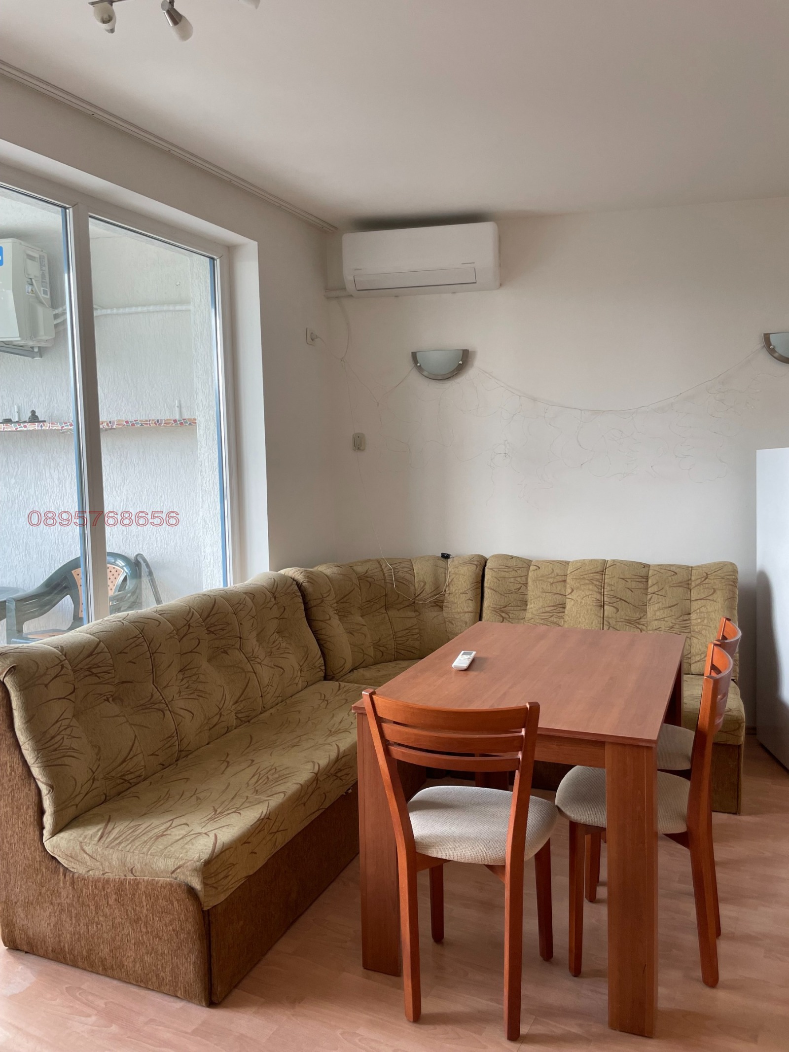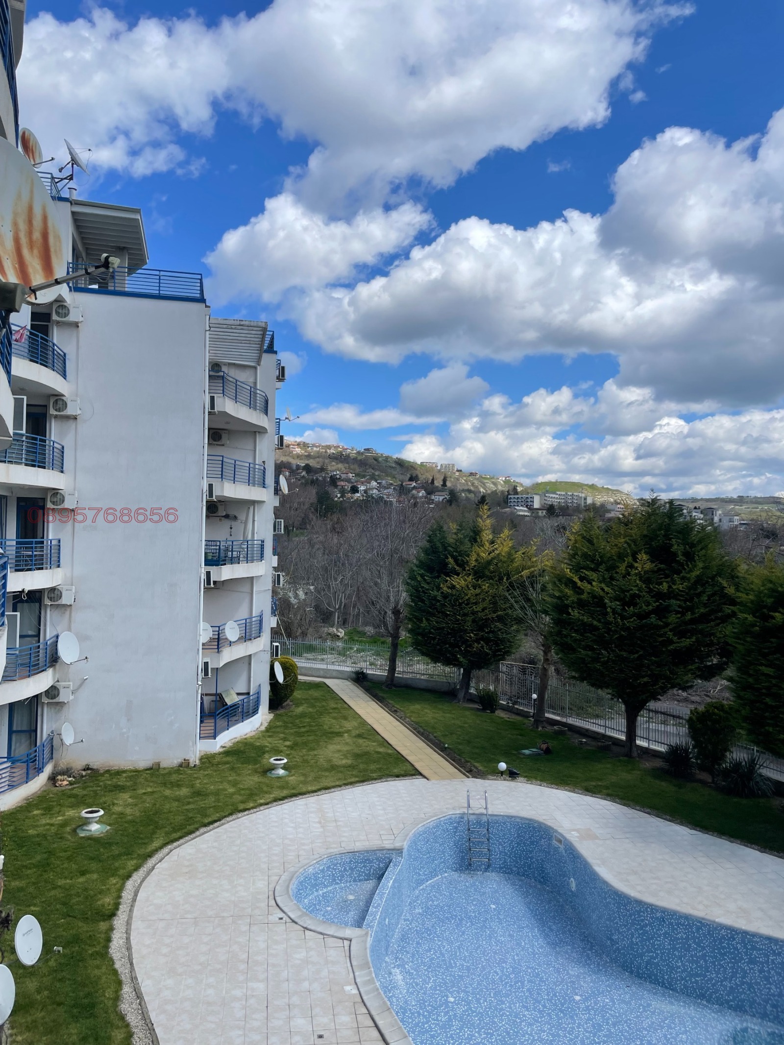 Fully furnished one-bedroom apartment for year-round rent in a well-maintained residential complex with a swimming pool in Balchik. The apartment is bright, cozy and functional, suitable for a single person, a couple, or someone working in the area. In the dining area there is an L-shaped sofa with a sleeping function. The kitchen is fully equipped with a washing machine, refrigerator, microwave oven, built-in oven and ceramic hob, extractor, TV, a new air conditioner, and full kitchenware including plates, glasses, cutlery and everything necessary for comfortable living. High-speed internet is included in the rental price. The property features a large enclosed terrace with a view of the pool. The apartment is located in a quiet gated complex with controlled access and parking spaces. The complex is well maintained and very peaceful. It is situated near the Palace and the Botanical Garden, with access to bus stops to Albena resort, as well as restaurants, shops and all essential amenities. Long-term contract, year-round rental, one-month deposit required, pets are allowed.