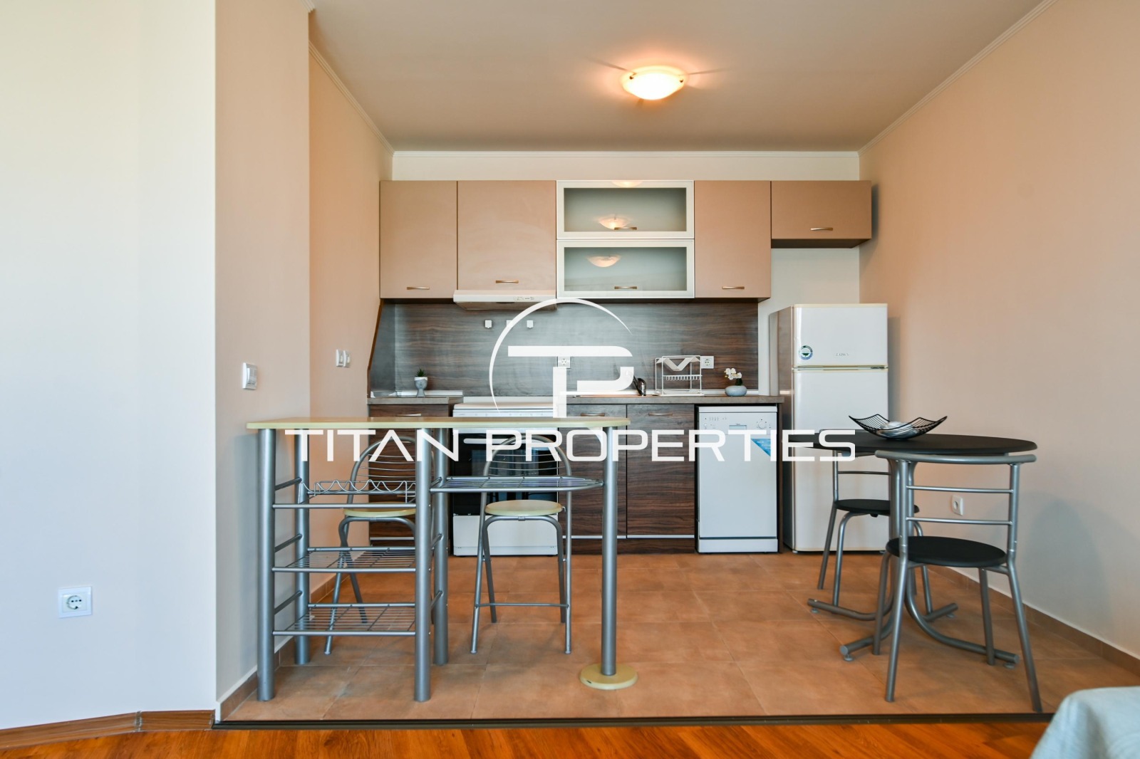 Разпределението включва хол с кухня, спалня, коридор, тераса и баня с тоалетна. Обзаведено е със съвременни мебели, отоплява се на газ и разполага с климатик и интернет окабеляване за Вашия комфорт.