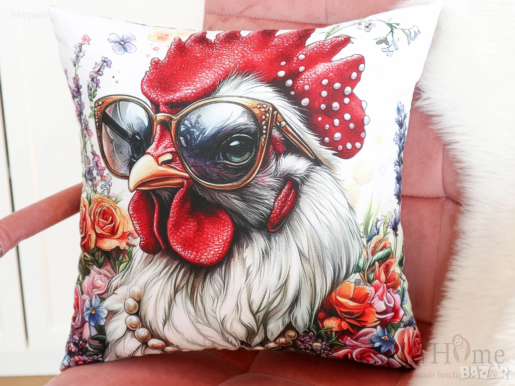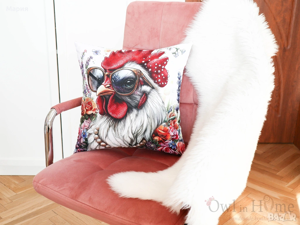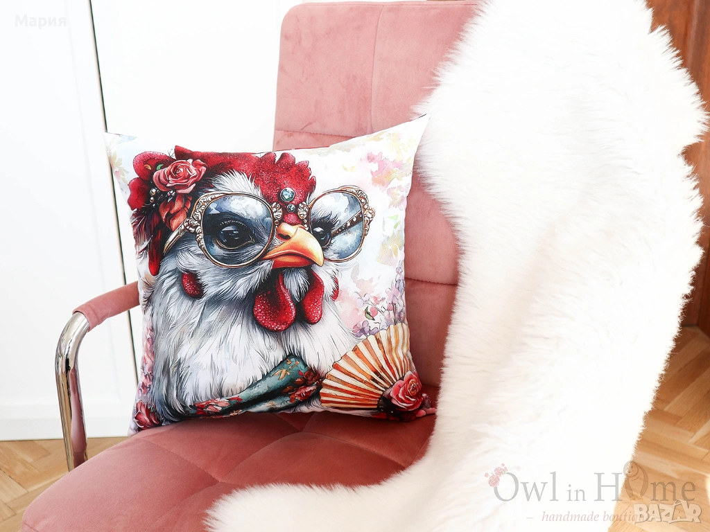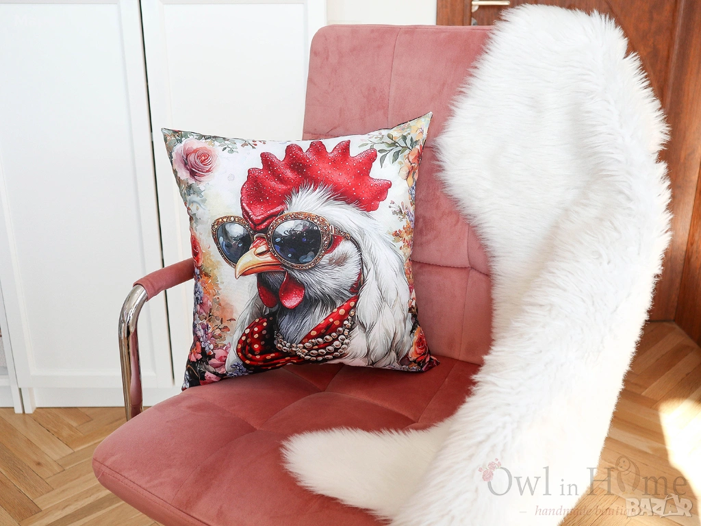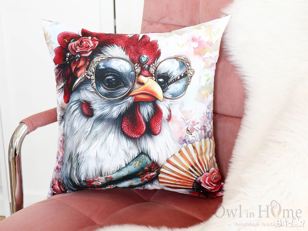 Добавете характер и артистичен акцент във вашия дом с тази дизайнерска декоративна възглавница с кокошка.