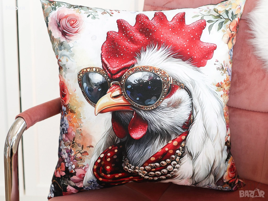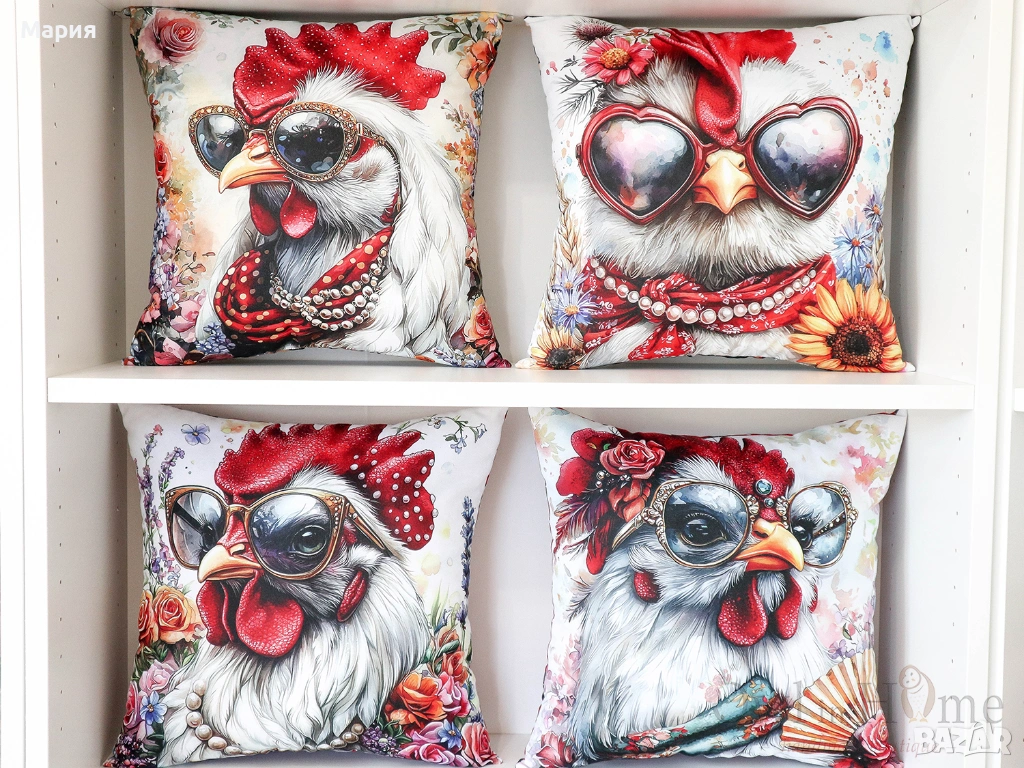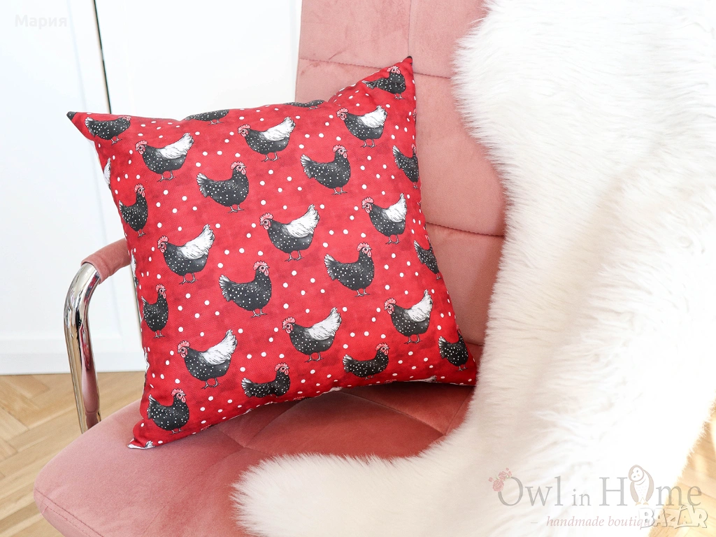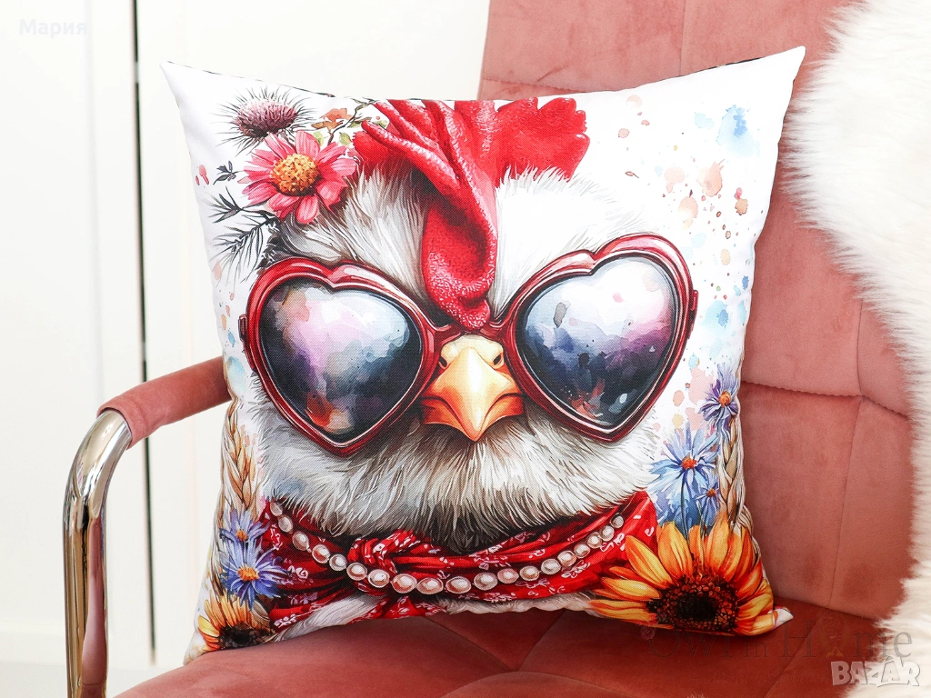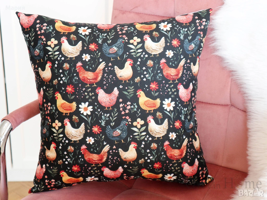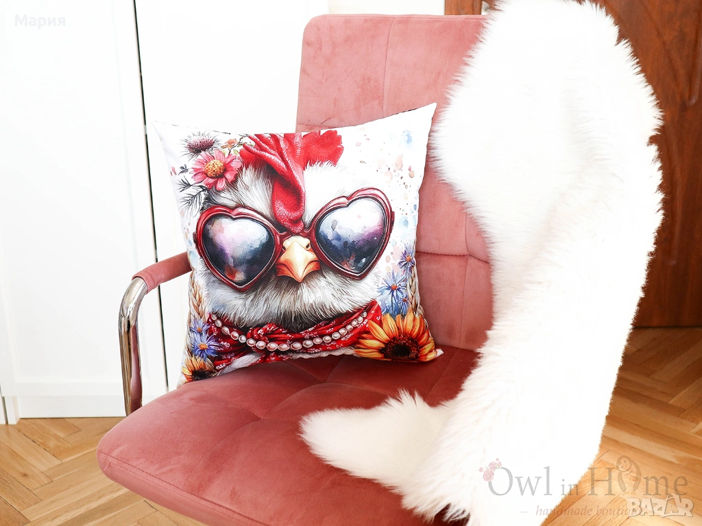Добавете характер и артистичен акцент във вашия дом с тази дизайнерска декоративна възглавница с кокошка.