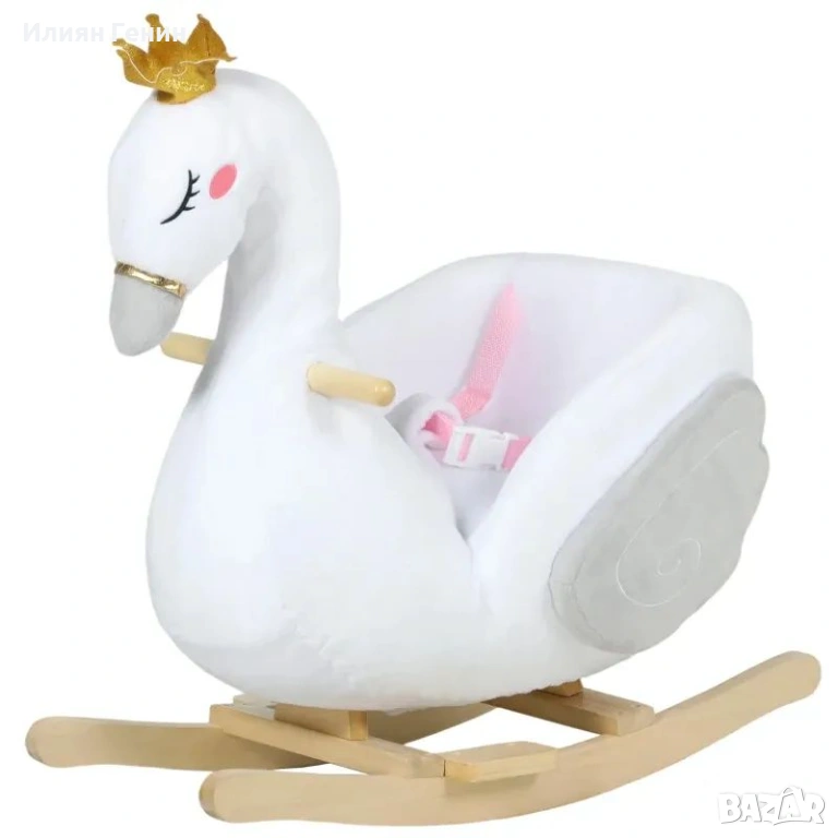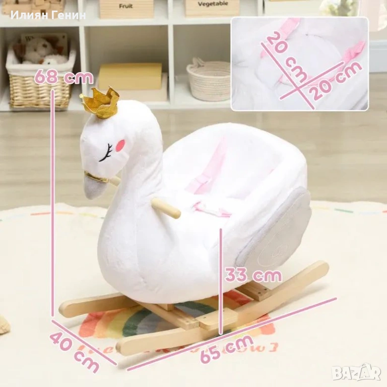 AIYAPLAY Люлееща се играчка лебед с приспивна песен, мек пълнеж, дървена рамка, за деца 1,5-3 години, 65x40x68 см, бяла - 50.00 €.