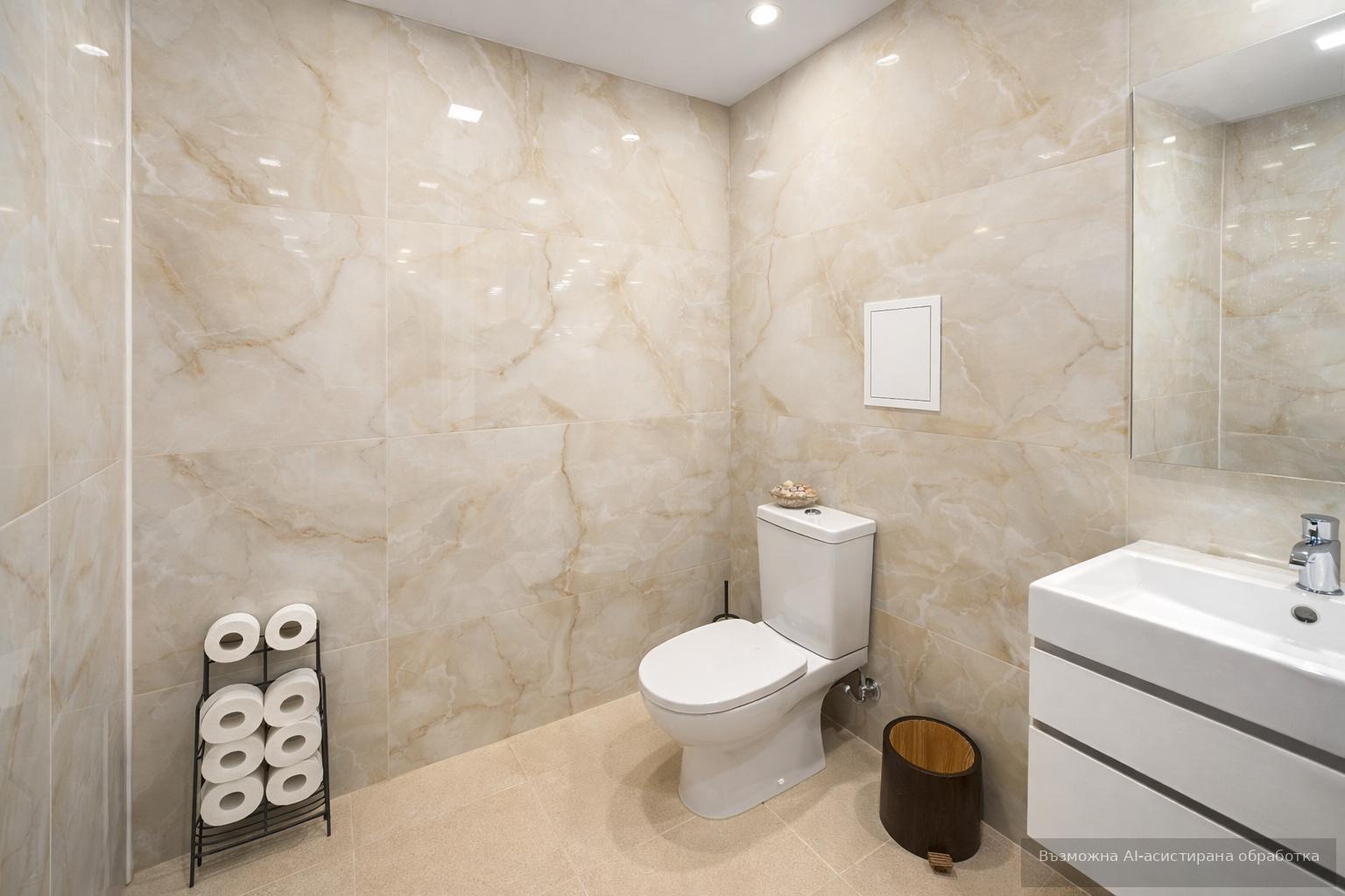 Имотът е ситуиран на 4-ти жилищен етаж и разполага с площ 65кв.м., разгърната в следното разпределение: входно антре, хол, кухня, спалня, баня с тоалетна, отделнаа тоалетна и тераса.