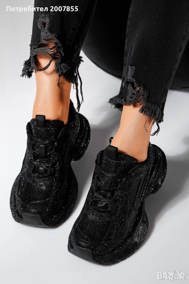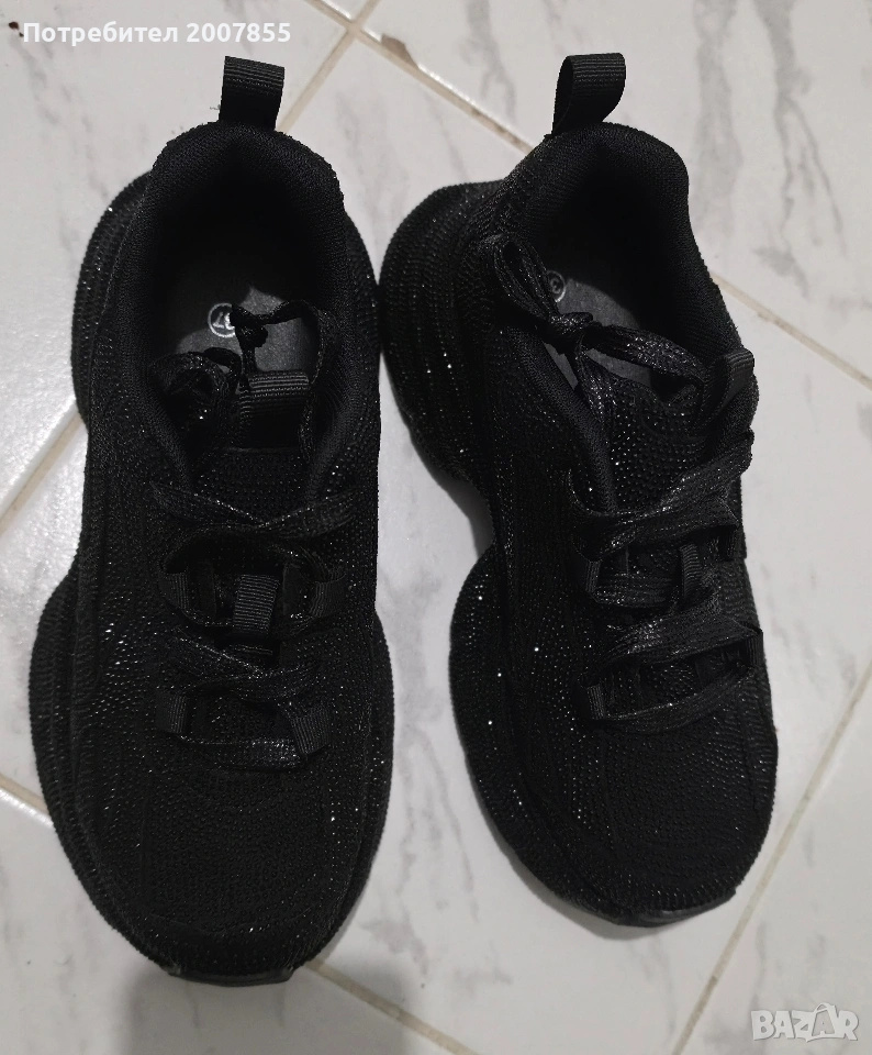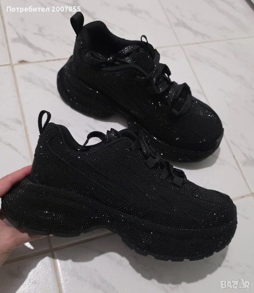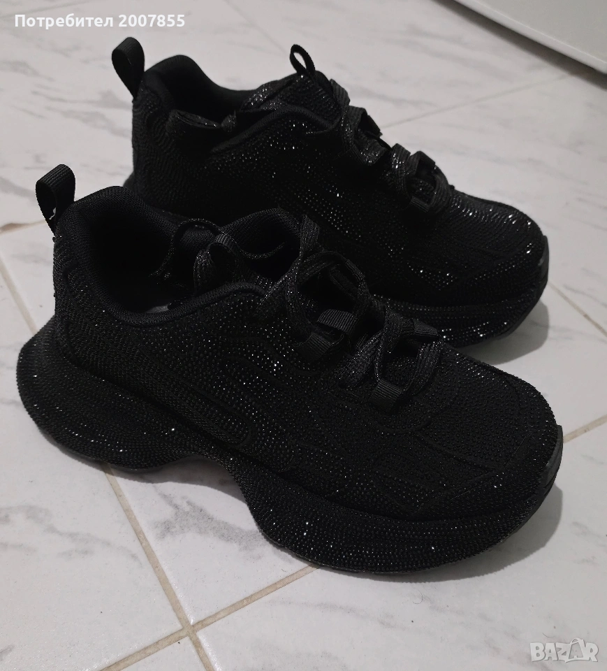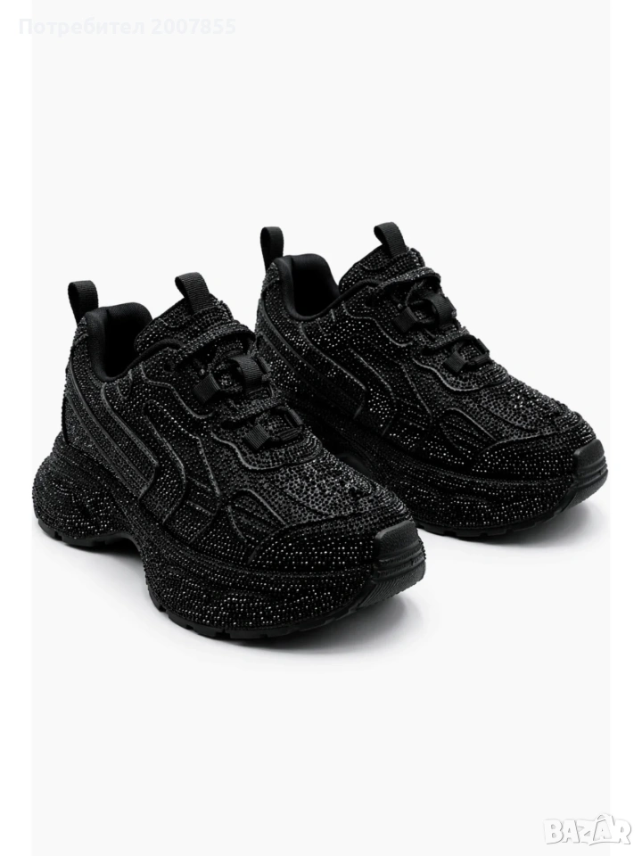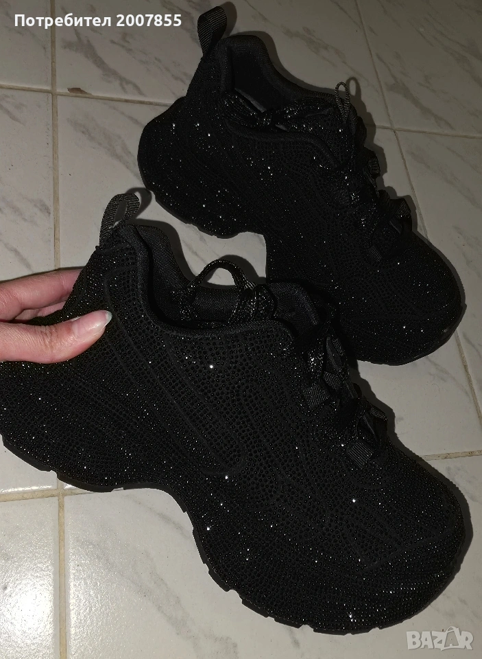 Чисто нови черни дамски обувки, сникъри с кристали, с които няма да останете незабелязани! Блестят уникално и са много удобни. Уникален модел, много нашумял в момента. Овърсайз модел, стил Баленсиага - Balenciaga.