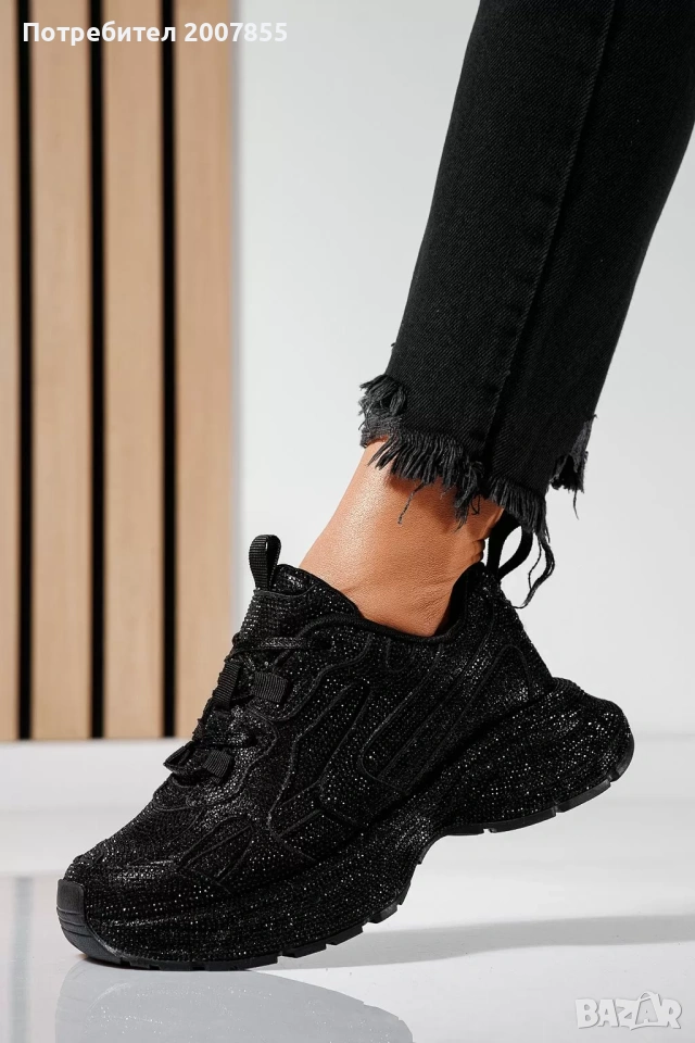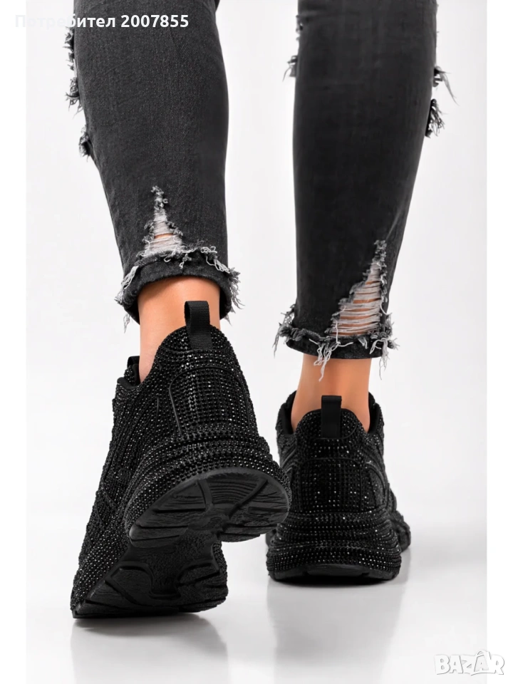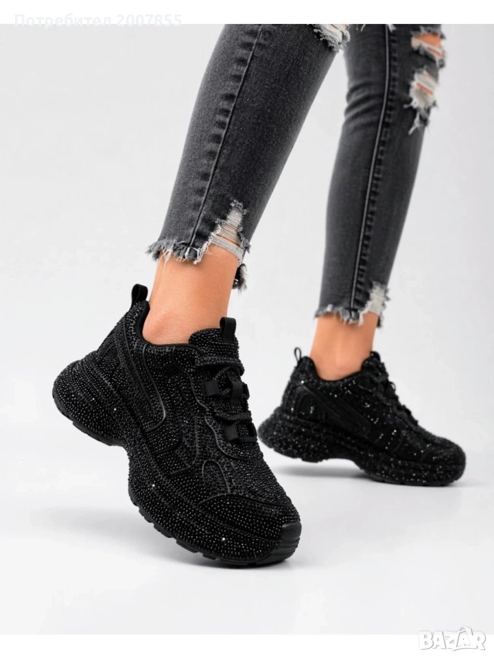 Дамски черни маратонки с кристали → Обява 54250088