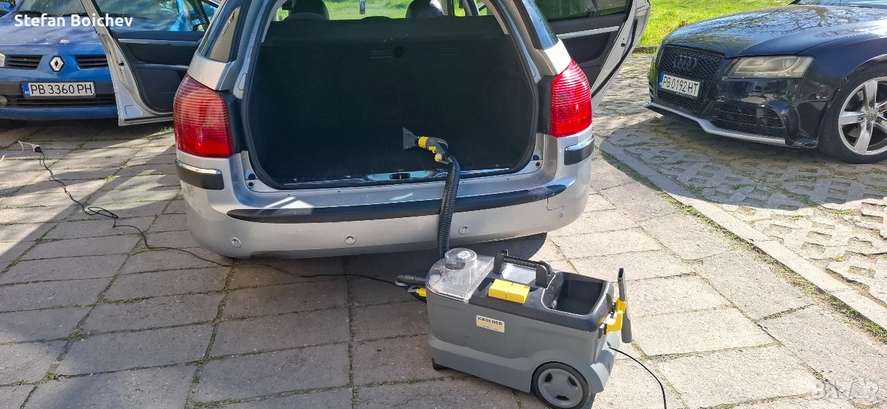 Перат се всички текстилни части (седалки, под, врати), БЕЗ ТАВАН. ЦЕНА: 70/90 евро (Според габарити на колата, брой седалки и състояние.) Ако желаете демонтаж на седалките, за да се изпере абсолютно целия мокет, цената е друга (коментира се след оглед). Процедурата отнема около час/два. При слънчево време, съхненето отнема около 30 минути. Работя със скъпи и качествени препарати.