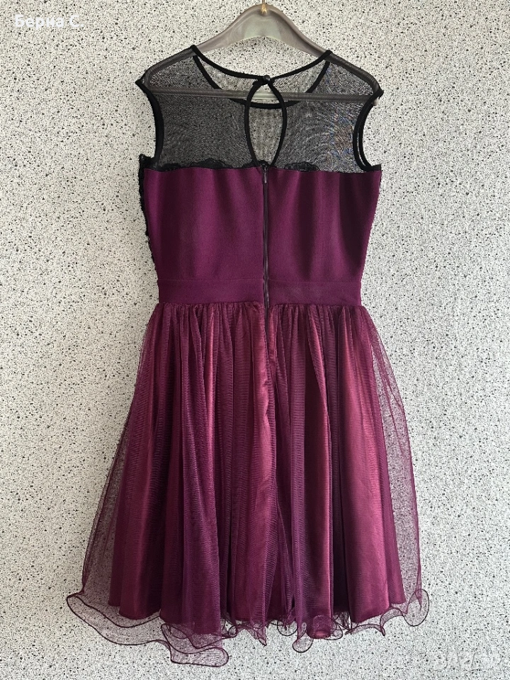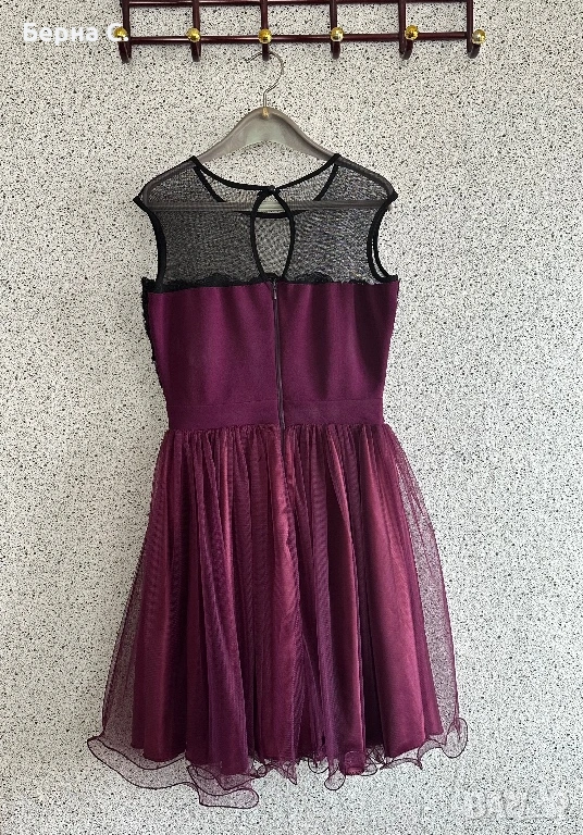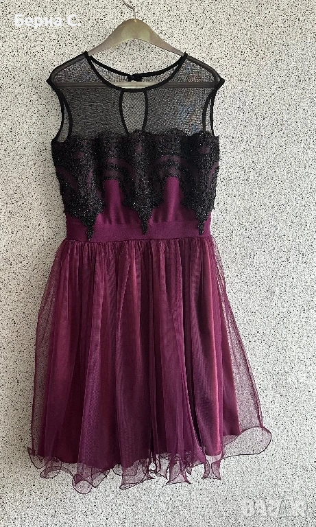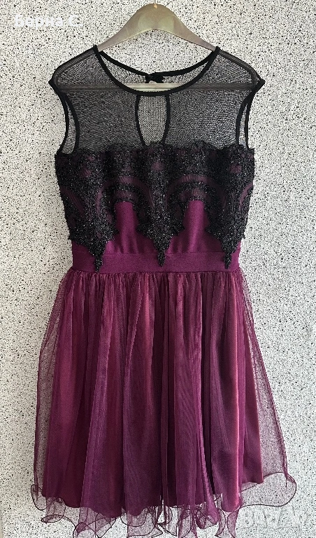 Официална рокля лилава със черен десен и полата отгоре е със тюл…