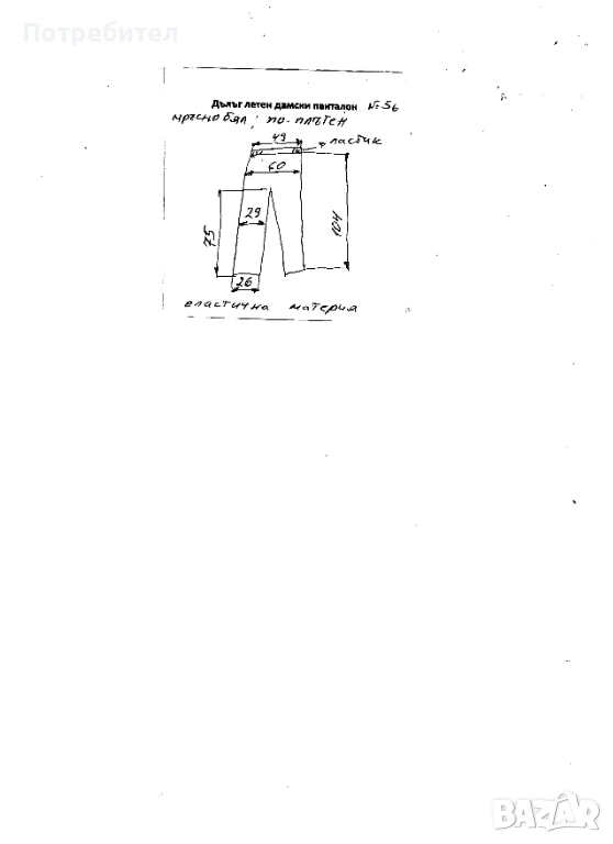 /ластик/; ханш-120; дължина – 104 см. Размерите са описани на схемата.