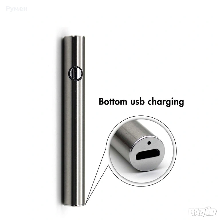 Презареждаща се батерия 2.7- 4V, 380mAh подходяща за атомайзери с резба тип 510 със Зареждане TYPE C. Елегантен, компактен дизайн и различни функции управляващи се с едно копче