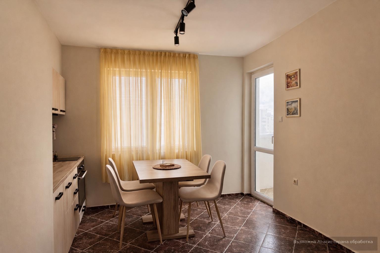 Жилището се предлага напълно обзаведено и оборудвано с всички необходими електроуреди.