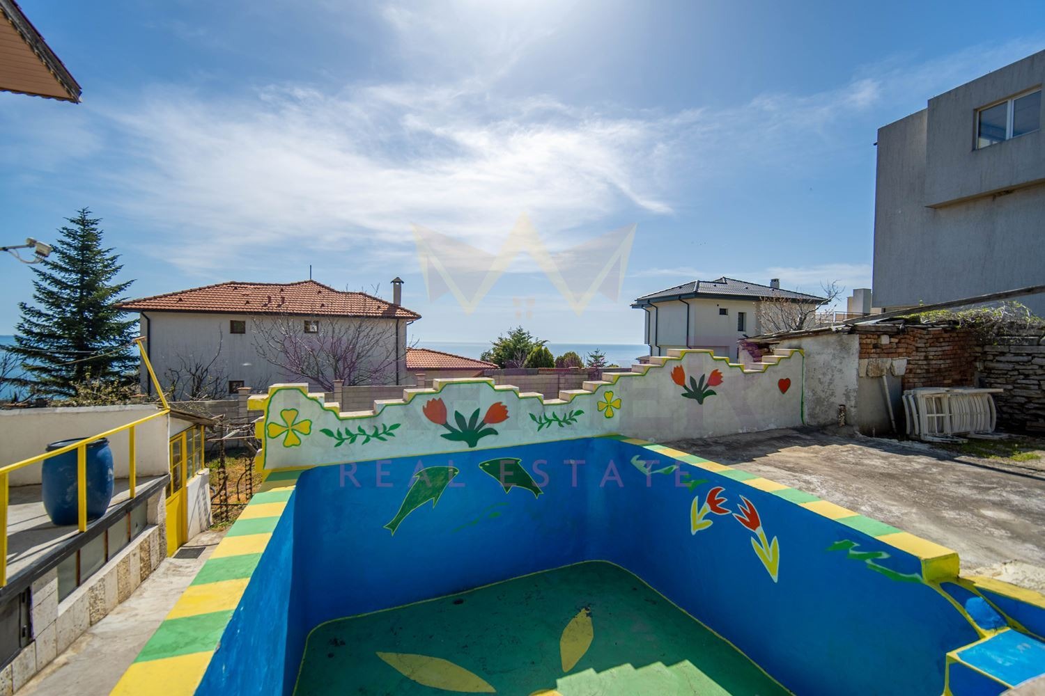 Двуетажна къща във вилна зона 'Момчил' в гр. Балчик с морска панорама. Имотът е с разгъната застроена площ от 70 кв.м. и собствен парцел с площ от 400 кв.м.