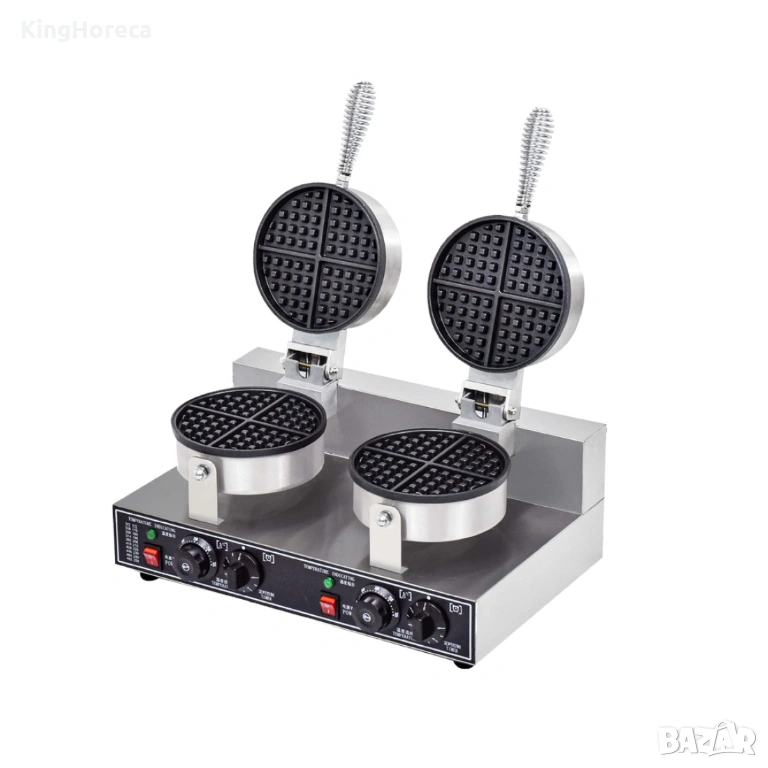 Професионален гофретник за кръгли белгийски вафли с двойна глава – надеждно решение за обекти с интензивно натоварване. Моделът позволява едновременно приготвяне на 2 вафли, което оптимизира работния процес и увеличава капацитета. Въртящият механизъм на 360° осигурява равномерно изпичане, а незалепващите плочи улесняват почистването. С дигитален контрол и температурен диапазон 50–250°C за прецизни резултати. Подходящ за ресторанти, кафенета и сладкарници. Поръчайте сега: https://kinghoreca.com/profesionalen-ured-za-kragli-belgiyski-vafli-visoka-proizvoditelnostили се обадете за консултация. Доставка над 251€ е безплатна.