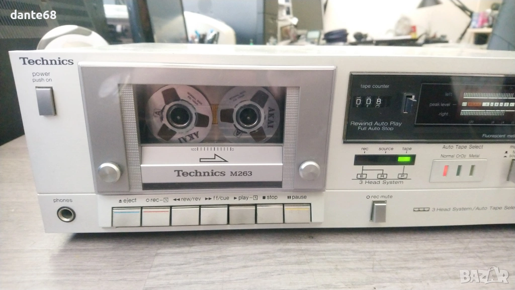 Триглава М-ка в перфектно техническо състояние, с нови ремъци и пинч, възпроизвежда и записва перфектно. Единствената забележка, която имам към него са следите от експлоатация по горния капак, всичко останало е безупречно. Техническите му спецификации и възможнисти ги има навсякъде в интернет, единственото, което мога да добавя за него е, че видимо е пазена машинка, съдейки по техническото му състояние и дори визията отвътре, с оригиналната си елементна база, няма следи от каквито и да е технически интервенции. Поведение и звук, разбира се без забележки.