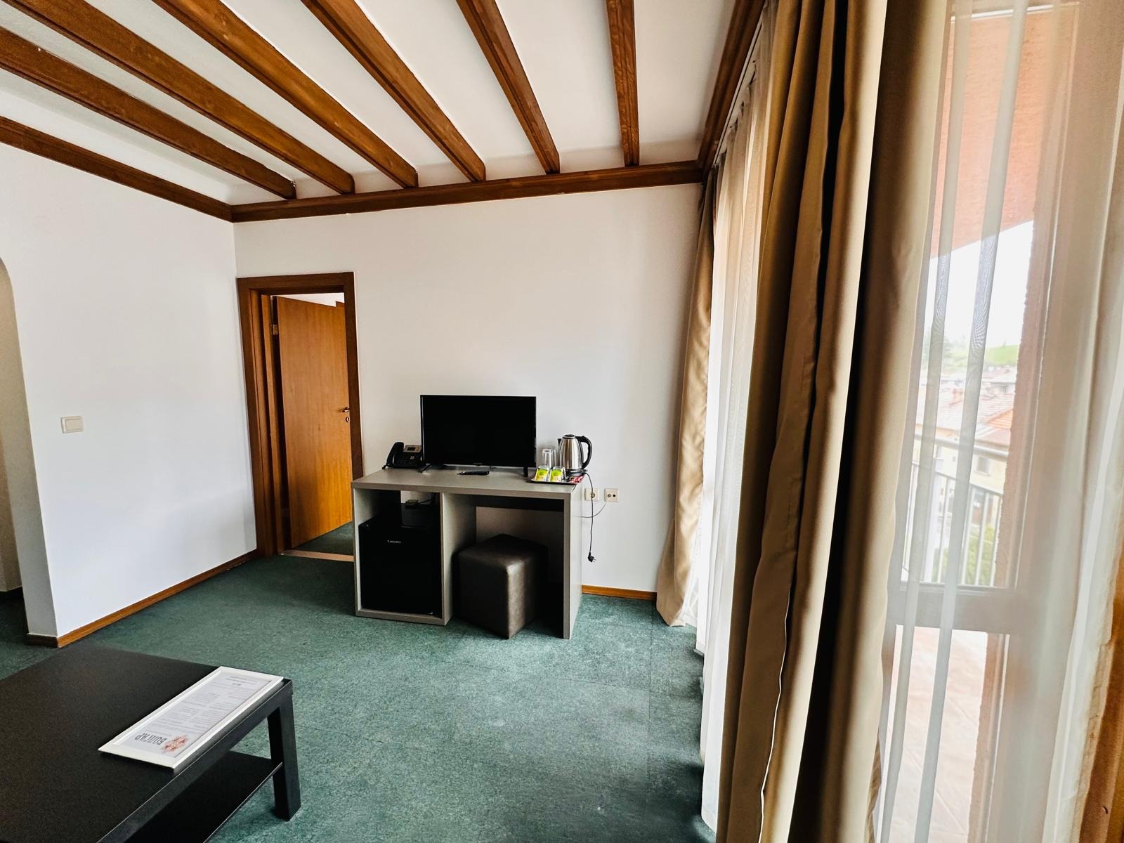 Апартаментите се състоят от хол, обзаведен с маса, мека мебел, телевизор и бюро.