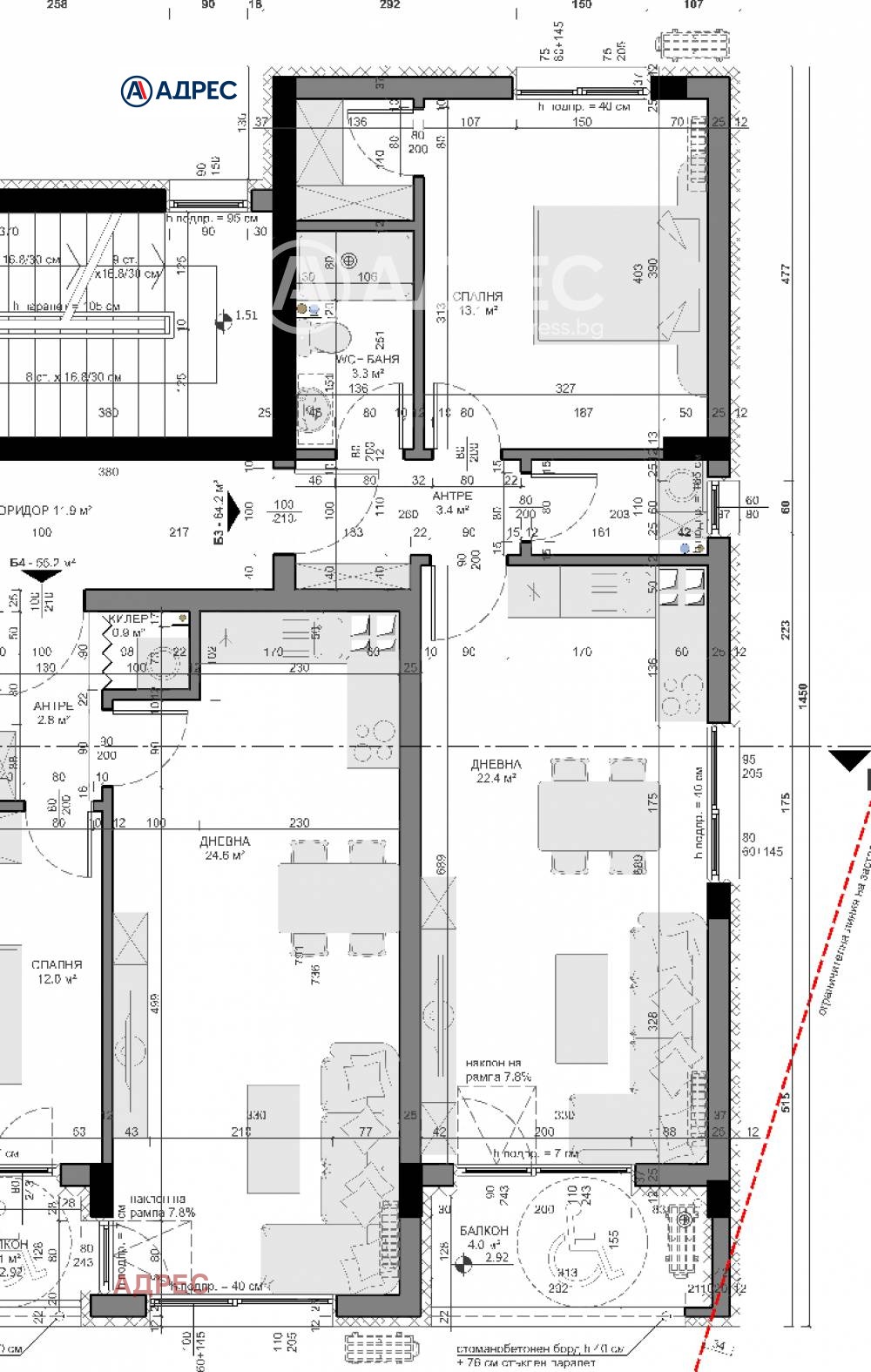 Нова пет етажна сграда в строеж, с два входа и само по четири апартамента на етаж. ГАРАНТИРАН ИНВЕСТИТОР. Асансьор и широки общи части приспособени и за инвалиди. Плоски покриви, без скосявания, изцяло покрити етажи -без отстъпи. Изключително практичен жилищен проект, като стаите са достатъчно големи и уютни и във всяко жилище има поне по два санитарни възела. В тристайните апартаменти спалните са със собствен дрешник и още три сервизни помещения. Практично, удобно и функционално! Моля разгледайте архитектурния проект към всяка обява, за по обстойна информация! Разсрочена схема на плащане!