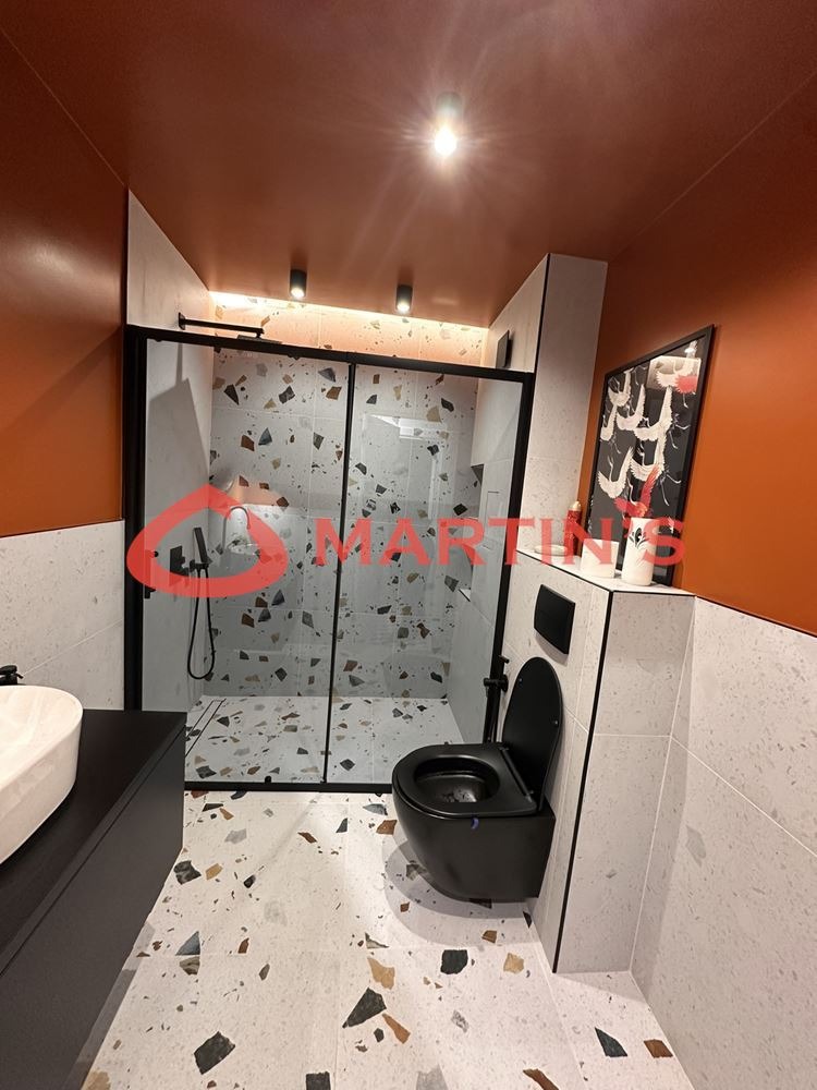 Жилището се състои от кухненска част с вградена поръчкова кухня, с вградени уреди BOSCH (миялна машина, абсорбатор, хладилник, фурна и керамични котлони); дневна - телевизор LG, голям диван с функция сън, TV шкаф; стая - спалня с гардероб, мокро помещение - пералня със сушилня на AEG серия 6; баня с тоалетна - дизайнерско изпълнение, напълно оборудвана със серия от най-висок клас марки. Има климатик GREE и автоматични външни ролетни щори. Жилището разполага с голяма тераса с югозападно изложение.